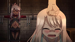 @Stilts: I was attempting to get you to think by pointing that out, Stilts. The lines that followed the one I quoted indicate a certain failure to see. Kuro didn’t get angry when Rin had her bound up in the basement and threatened to torture her, she didn’t get angry when they used a seal to bind her to Illya so Kuro couldn’t kill her, she wasn’t angry when Miyu tried to stab her in the back with Rule Breaker last episode. It wasn’t until now, in this conversation, that Kuro got angry.