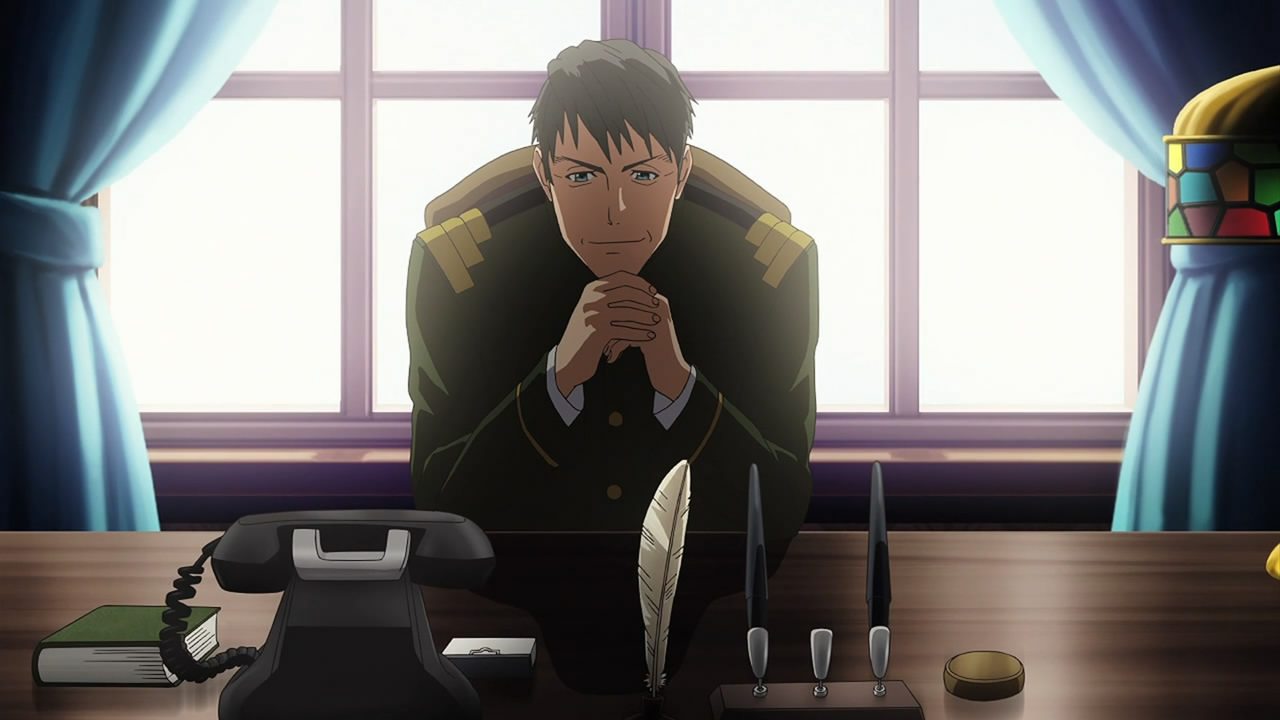 Aside from Silfy’s Trail Krieger getting shot down while evacuating the civilians of Wishpe and possibly Jamie’s concern over Tokimune’s life, the main takeaway for me this episode was the ending where Samonji was summoned by Toshikazu. For what purpose, it’s not entirely clear, but we were briefly introduced to Toshikazu back in episode four and again in episode six, where he was seen conversing with Suguro about Argevollen. At the very least, that suggests he knows more about Argevollen’s origins than Samonji does. The question now is whether he just has some flamboyant personal interest to see how one prototype Trial Krieger changes the tides of the war or whether he has has some more sinister motive. Either way, it looks like he sees Samonji as a means to his end, given that Tokimune and Argevollen are under the latter’s command. All I’m really hoping for now is that the next episode takes this subplot and runs with it all the way to the end. The reason being, I feel like there’s been a lot of “bait and switch”-type storytelling thus far, and I’d get into the series a lot more if there was one thing that each week built upon.