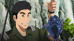Much like the episode title suggests, the main focus was to stress the importance of Samonji’s leadership. Without him or Suzushiro–or Kutsuwada Tsutomu (Kondou Takayuki) due to an upset stomach from eating a fish that he caught–the chain of command dwindled down pretty quickly to Okui Masaru (Okitsu Kazuyuki). My initial reaction to that was probably not to different from most others–“To who?”–because names like Kutsuwada and Okui just haven’t been mentioned much in the past nine episodes. We’ve come across a lot of faces, but there simply haven’t been a lot of names that stuck. Evidently, this episode tried to rectify that in some way, plus served as a lead-in to what I imagine to be a much more important development surrounding Toshikazu Cayenne (Koyama Rikiya) and his interest in Tokimune/Argevollen.