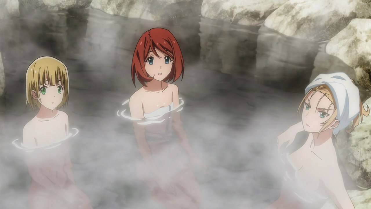 There’s a saying that amateurs talk tactics, but professionals talk logistics. I quite liked the subversion of the whole “super-robot” concept at the beginning of the episode. If you can’t keep it running, the super robot’s almost worse than useless, and historically new prototype tanks/airplanes etc… have had horrific issues with maintenance when fielded. This was the closest Ingellmann’s come to capturing Argevollen, and it wasn’t because of any super complex scheme, it’s because they didn’t have the right parts for it! I had high hopes that this episode would build off the last one and continue to develop and explore the world… Then hot springs.