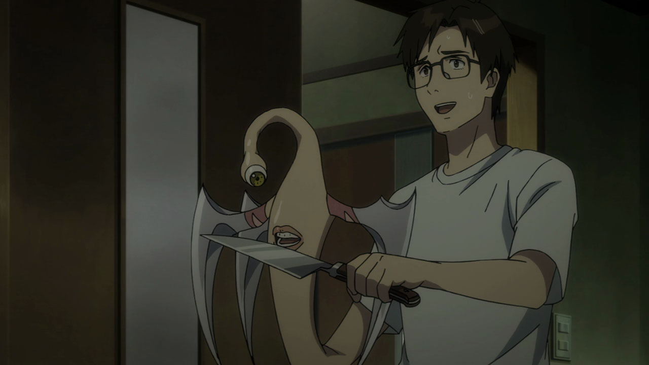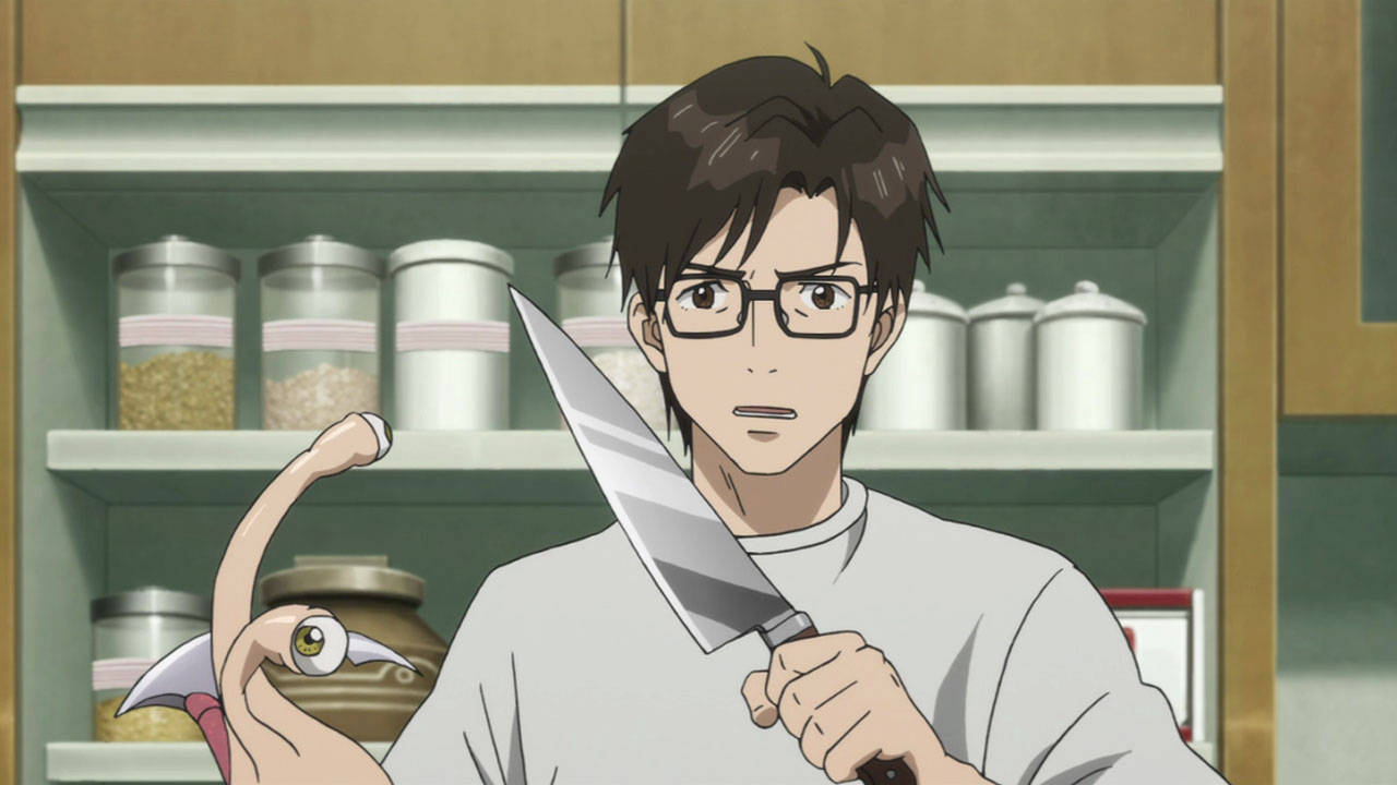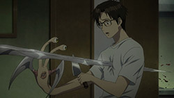 Aw man. I was expecting Izumi’s parents to die at some point, but this was quicker than expected. And in such a gruesome fashion too. I really can’t blame our protag for breaking down at the end there, and that’s before getting stabbed and having to (most likely) subsequently kill this thing wearing his mother’s skin. Considering how he’s already changing because of the parasite contact as well, I wonder what kind of effect this’ll have on his mind.