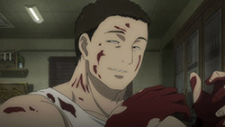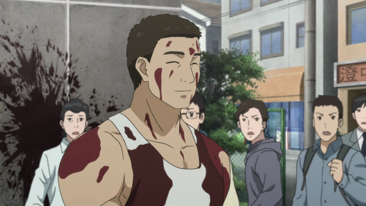 You know what’s REALLY interesting? The smiley man (officially credited as Tanktop Man) has the same voice actor as the parasyte in episode 2.