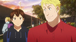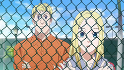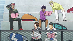 It so happens that our old friend Ike Souji is at the camp, too, and Alex would much rather spend his practice time against him than the newbie Maruo. There’s a lot going on here, some of it on the subtextual level. Natchan has asked Ike to help Ei-chan out however he can, and Ike decides on a kind of tough love approach to doing so – but ultimately, like everything else in Baby Steps the opportunity (in this case a chance to play every camper who wants a match against Ike) is only as good as what Ei-chan makes of it. This is the essence of the character – nothing comes easily to him. He’s not immune to being nervous at his situation, and he’s overwhelmed by the heavy ball and sheer pace he faces against Alex. But because Ei-chan is mature enough to understand his own frailties, they become opportunities – not necessarily to win, but to understand why he’s losing and win the next time. Or the time after. A journey of a thousand matches begins with a single step – a baby step, and there are no shortcuts.