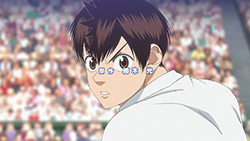 This season of course is freed from the heavy lifting of setting up the story, so it can dive right into the main course, and it definitely hits the ground running. Eijun’s two-week trip to Florida is a huge step for him (“baby” or not) and indeed it’s a common rite of passage for young Japanese players to go to America and test themselves against the rest of the world. To say that Japanese kids find this experience intimidating would be an understatement – it can’t be forgotten that this remains one of the most self-contained societies in the world, one which forbade contact with the world until barely more than a century ago. And especially in the realm of athletics, where Japanese youngsters often give up a substantial size advantage, the rest of the world can seem very scary.
