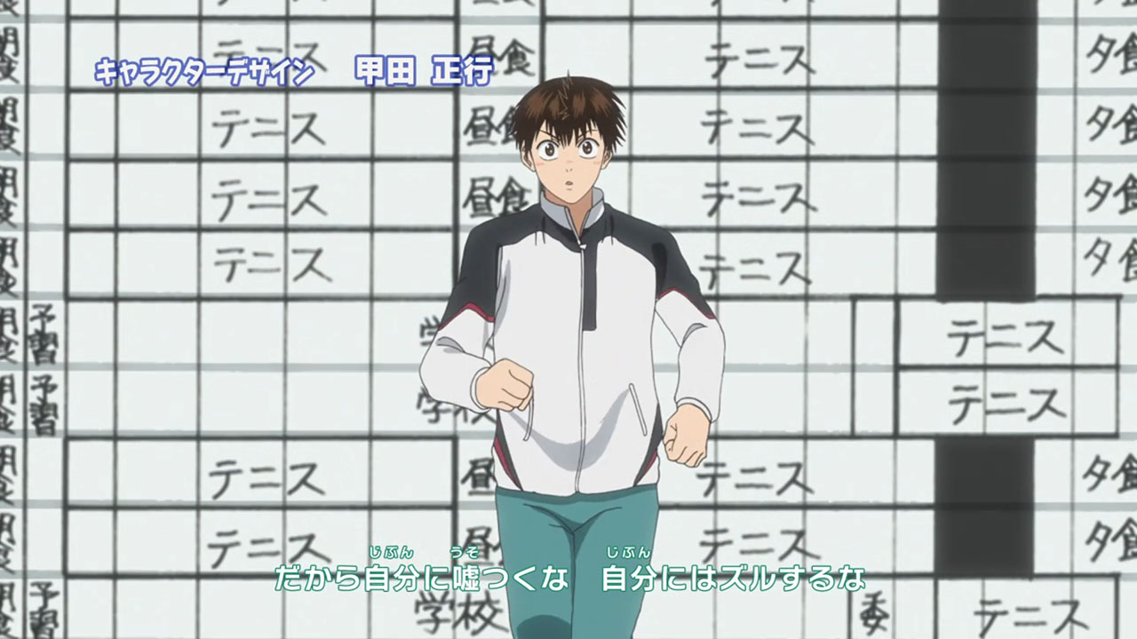 It’s startling to think how many of my favorite series of the last couple of years have come from Studio Pierrot, and the first season of Baby Steps constituted what was in many ways a “typical” modern Pierrot adaptation. It was almost obsessively faithful to the manga, and the production values were inconsistent. There were some exceptions, important match episodes that were very detailed and fluid, but generally the visuals were sub-par. I can say with certainty that the premiere of the second season is way better than that of the first in that regard, though not of course whether it will continue. The OP remains Abe Mao’s “Believe in Yourself”, with new animation – while I might otherwise be disappointed not to get a new song, this one is so perfect that I’m happy to keep it around. The ED is new, and likewise seems a good fit for the material.