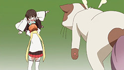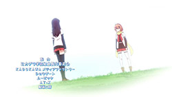 Being the hero and presumably important, this first episode does a great deal to endear us to Eruna, as the story moves almost entirely from her perspective, and she is expected to carry more or less the entire show. Normally, all the introductions and exposition of pilot episodes risk bogging down the pacing, but Eruna provides enough entertainment to fill in the quiet spaces and then some. No development seems dull when there’s a crazy lesbian to go hyperactive over it. I didn’t think I’d like her very much after reading a bit of the manga to write the preview, since she’s basically basically just the perverted idiot archetype that we’ve seen time and again, but Eruna manages to go enough over-the-top to make me laugh. Of course, I still don’t know why she’s special or whether she’ll ever have a motivation beyond swooning for the damsel (Oonishi Saori), but at least I like her, and am interested in finding out more.