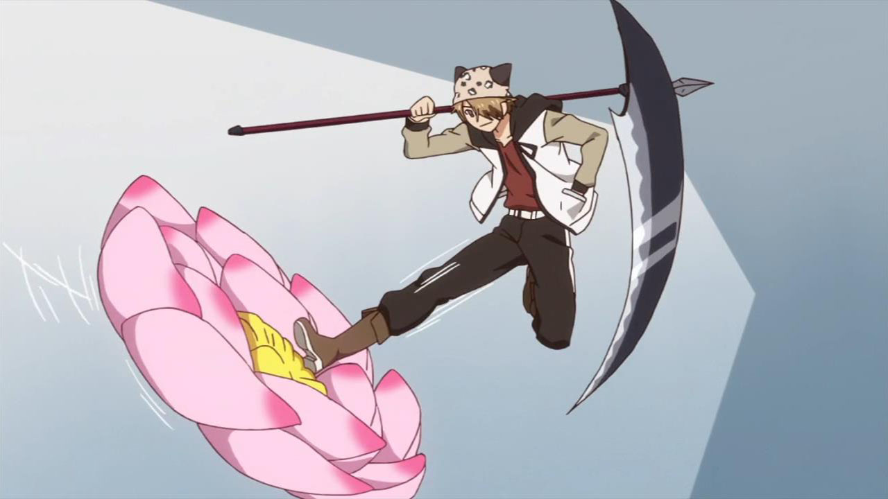 We’re likely not supposed to think about it very hard, for if we were to get overly serious about the details, we surely wouldn’t last. Just consider the clubs and their representative powers, which are thematic to the point of silliness. The Art Club uses palettes as options Gradius style to throw paint bombs, the Calligraphy Club has a giant brush, the Gardening Club grows triffids and the, er, Impractical Agriculture Club wields an oversized scythe. The themes let us pin them down on first sight, and their powers aren’t even the most comical anime has to offer. The farce and frivolities, though, does clash with the cold open, in which our protagonist’s alleged love interest gets nuked by someone from apparently either the Photography Club or the Ophthalmology Club. Do the battles ever become serious business? Or was it just an action-teaser with no context? I guess we’ll find out, and until then we’ll just wonder whether people brooding enigmatically at their window is foreshadowing or if they’re just admiring the glass-work.