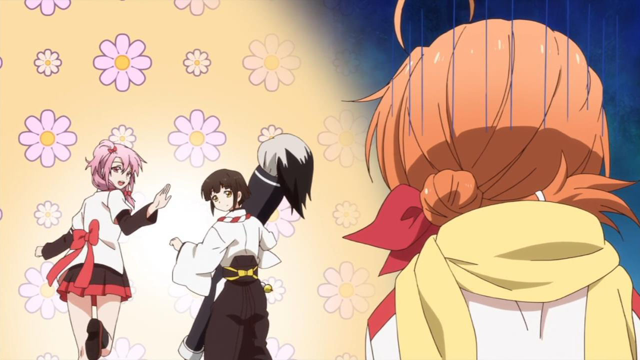 There’s a lot of things that Mikagura Gakuen Kumikyoku could be at this point—comedy, drama, action, romance, or all of the above—and just from this episode I can’t really tell what its goals are. But it looked pretty good, was paced fairly evenly, and most importantly was fun, so one doesn’t feel like they need to immediately find out. I don’t know if I want to be covering this show on a weekly basis, especially if Funimation is going to make things difficult, but I’ll give it another episode, at least, to see if it can maintain its energy. I’ll see you all again next week.