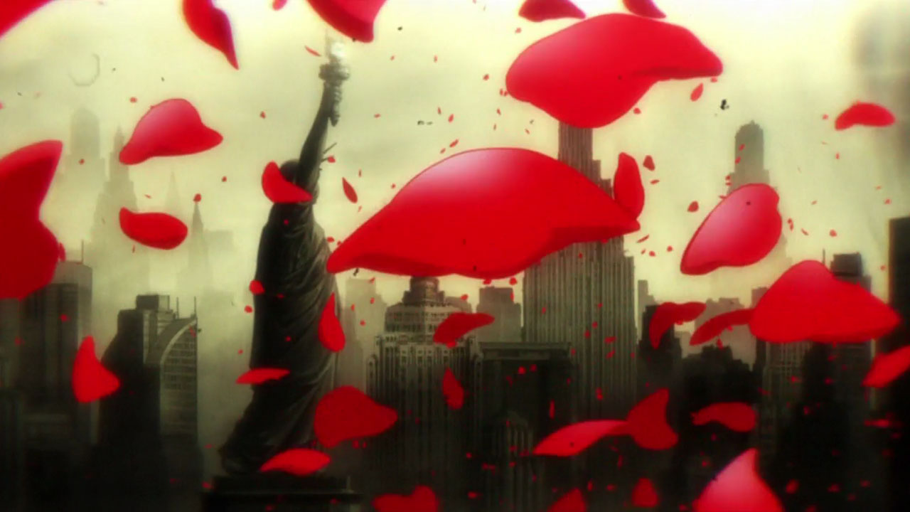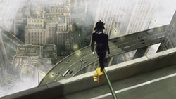 I won’t claim that what Matsumoto-sensei is doing here is completely original because, like all directors, she’s clearly got her influences. As with Kyousougiga there’s a ton of FLCL in Blood Blockade Battlefront, and when the first half of this episode employed that very Pillows-like guitar/bass soundtrack the resemblance was even more striking. The free-form narrative structure and jazzy soundtrack is highly reminiscent of Baccano!. But BBB stakes out its own territory, with its gorgeous post-apocalyptic New York backdrops and cacophony of weird extra-dimensional creatures.