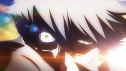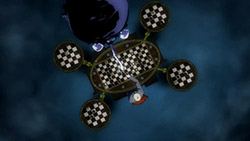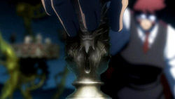 This Prosfair battle is certainly style over substance, but with Ludwig van as the soundtrack and these amazing visuals, what style it is. Ulchenko challenges Arlelelle to a 9-hour battle – extended to 10 to include Ulchenko’s request that Arlelelle eliminate Klaus and KK (which I suspect the Don would have refused even if he’d lost) – and can’t hack it. Klaus offers to play for Ulchenko’s life, as well as the information about Angel Scale, to which Arlelelle agrees with the alarming condition that Klaus must hold out for 99 hours.