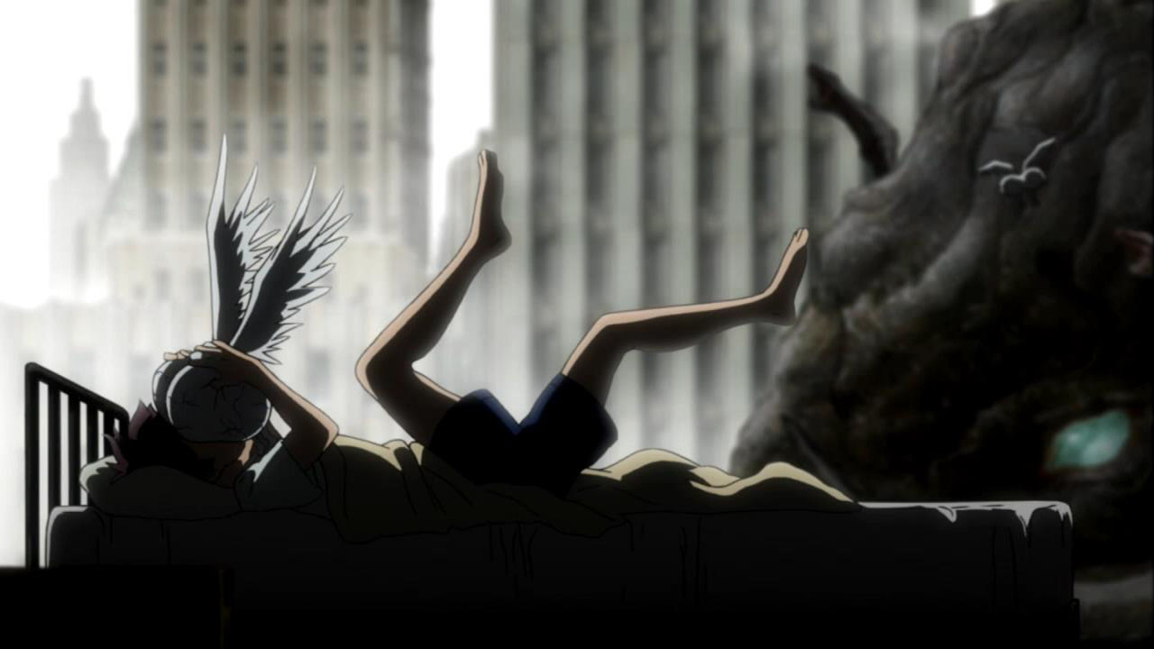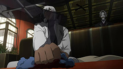 My takeaway from all this is that Klais is one hell of a bro, and GAR too – never mind his selfless act on behalf of the ungrateful Ulchenko, just holding out for 99 hours against the Don is remarkable. Clearly it’s this match rather than the Angel Scale plot which is the point of the episode. As for Leo, he’s a bit player here. He moves into the office after having been kicked out of his tenement apartment (turned into a luxury hotel) and suffers some not especially funny abuse from Zapp. And he meets up again with White, who seems not to be an actual ghost but instead a symbolic one, a girl confined to the hospital for three years. Just what her (anime-original) role is going to be is still very much a mystery, but I’ll just add it to the pile – I don’t know where we’re going but I’m enjoying the ride.