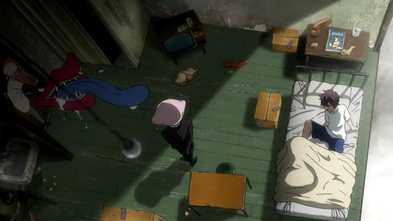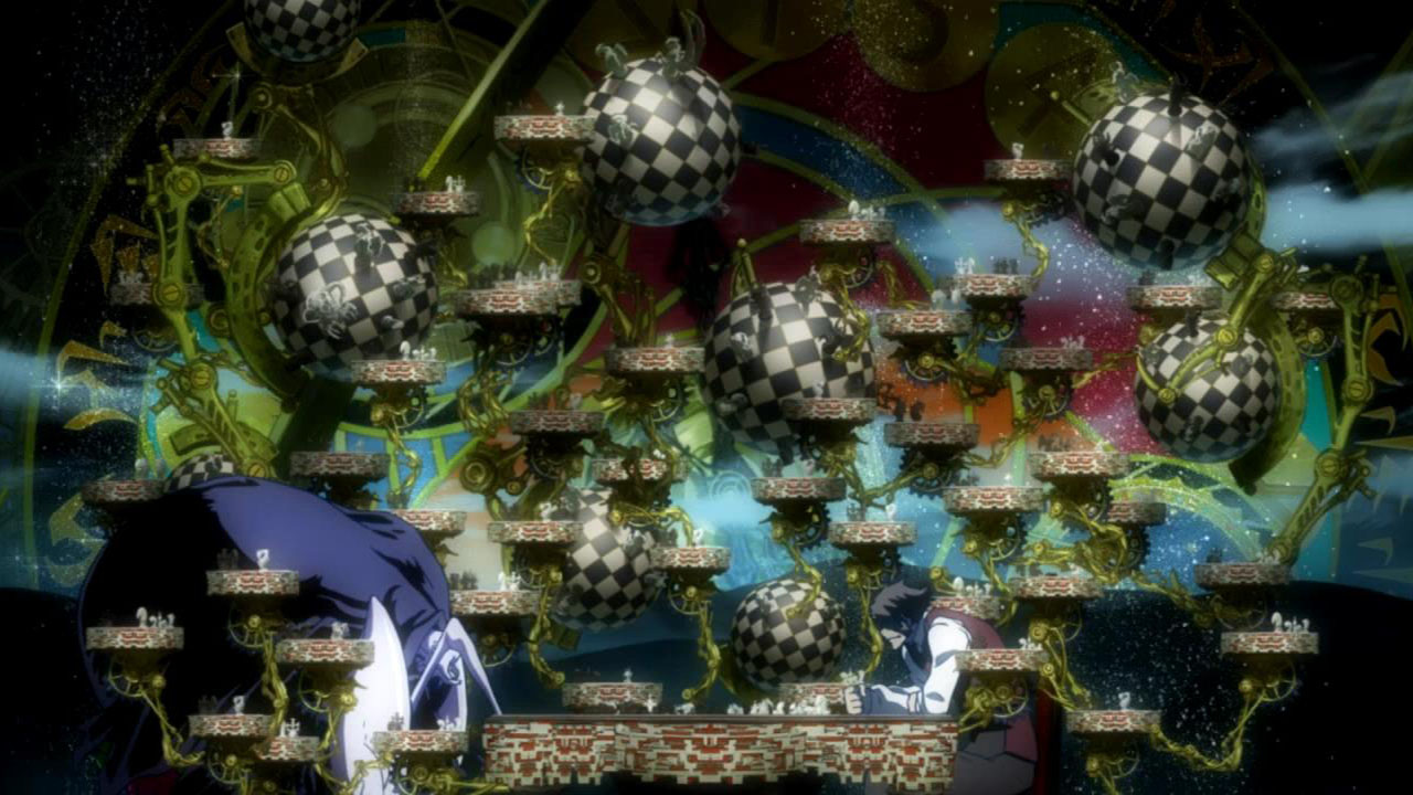 One thing that really stands out for me with this series is the music. Obviously the OP and especially the ED are excellent, but take a look at what Matsumoto-sensei has done with the BGM. In the premiere, it was exclusively a bebop-styled jazz that recalled Baccano!. In the second ep we saw a taste of Pillows-esque guitar and bass tracks that inevitably brought FLCL to mind. And this week we started out with a vocal track that sounded Indian or Arabic-influenced to introduce us to the “Alterworld” – a landscape even more surreal and dreamlike than Hellsalem’s Lot. Then it switched to Beethoven’s Symphony No. 9 (“Ode to Joy”) as the backdrop for one of the strangest gaming sequences we’ve seen in anime for awhile. All so very different, yet all so fitting for the moment and effective.