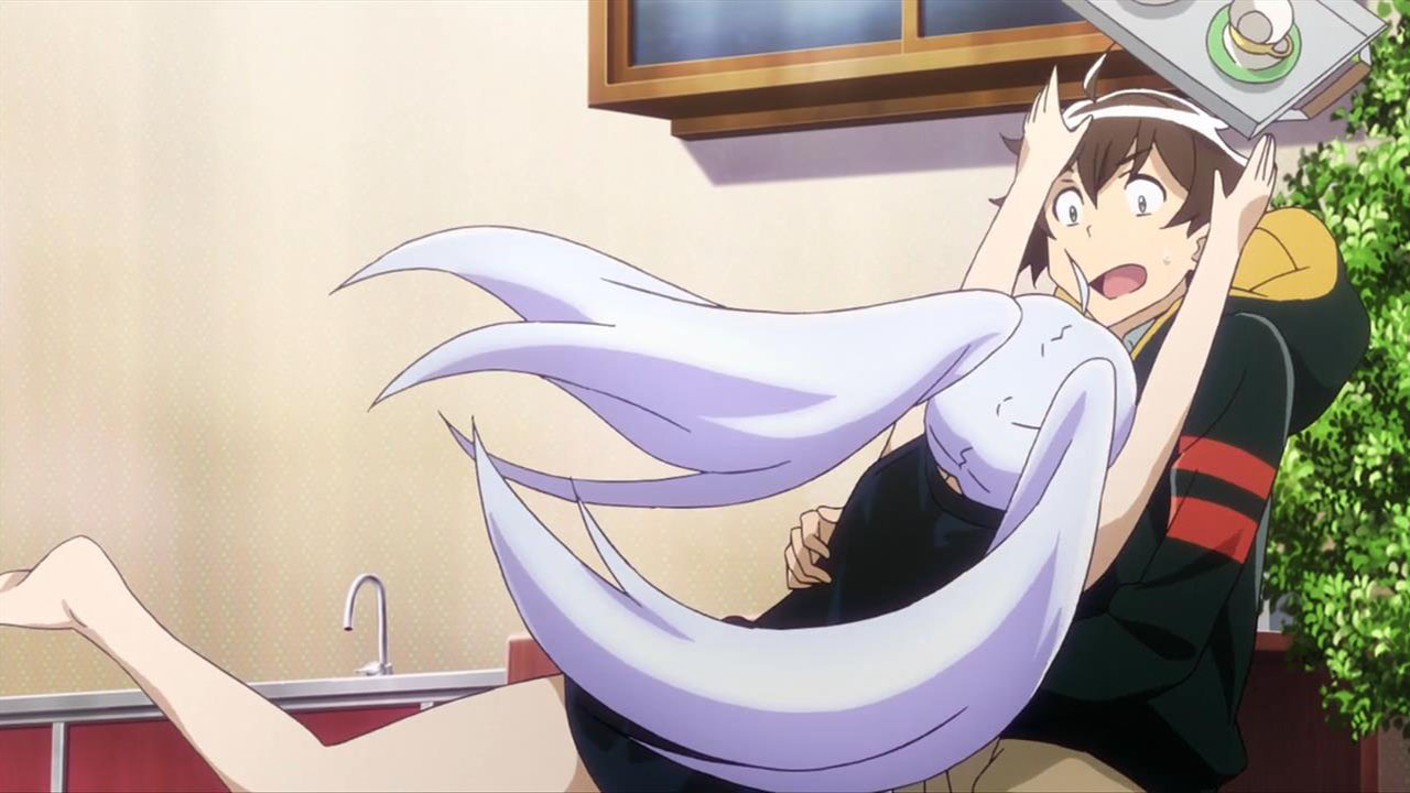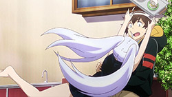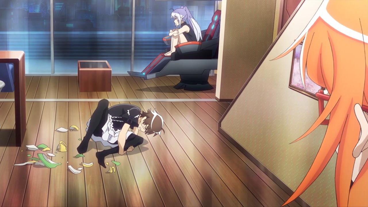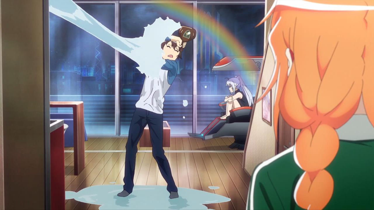 So apparently Plastic Memories is a rom-com now. All the usual is there: a flimsy excuse for our male and female leads to live together, some fanservice, some sexual tension, and general hijinks all around. Impressively, a good half of the episode was basically just one long running gag, and while I was amused for the most part, the other part of me was left wondering whether, in this future, Tsukasa was genetically engineered to be the thickest man on the planet. Sure, some of it was not exactly his fault (though, trying flambe the first time cooking, no matter how good you think you are with following manuals? Totally your fault), and you have to give him points for persistence, but at some point you’d think the poor sap would get the hint. The advice of his colleagues are variably useless or misogynistic. There is no version of reality where horrible chuunibyou crossdressing is going to charm the girl. At least, save it until after the first date. You have time to be kinky later.