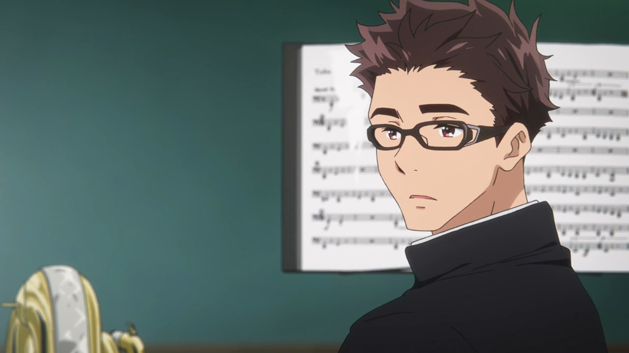 “Singing Solfège”Taki-sensei’s Methods of Practice and Understanding: I enjoyed reading everyone’s comments last week, especially regarding Taki-sensei, and his methods and approach. Clearly, he divided opinions. Some thought he was too harsh, that he wasn’t doing his job as an advisor, and wasn’t assisting the students; others thought his blunt words were necessary for a band that had agreed to aim for nationals. It’s important that he got so many people riled up for all those reasons, because it shows that Hibike! Euphonium is doing a good job at creating an authentic band experience that others can chime in on based off their own personal experiences. And with what we got this week, I’m sure many of you experienced band members (which I never was, mind you) had some strong feelings about the practice sessions and Taki’s methods. One thing you can’t complain about anymore is that he’s not even trying – he really is. It’s a busy week of parent-teacher meetings, yet he’s organising these exercises for all the band members in order to better their breathing, their commitment, and making sure they understand what they need to do to get better. Some of the stuff may seem a little out there, but it all becomes relevant once you look at the bigger picture. Each exercise or lesson is important for everyone; no one is excluded, which I’m very happy about – this cast is massive (sixty or so, I believe) and many will forever remain unnamed, but I appreciated seeing even the background characters get their time with Taki-sensei as he either told them what to do, or told them how bad they were. He’s harsh, for sure, and that smile seems like a big fat lie, but I thoroughly enjoy what he’s bringing to the group, and to the anime as whole. Considering how divisive he is amongst viewers, it’s only fair that he be just as divisive with his students. Some of them still proclaim that they don’t like him, others – like the bass section – don’t have anything bad to say about him; they did have a very positive lesson with him, after all. But everyone came together in the end, whether it be to prove him wrong or prove to themselves that they were capable of it, and damn, they were! The performance at the end of the episode was brilliant. It still had errors here and there, but the work put into the sound production is evident – it sounded crisp and real, and I felt like I was there in the moment. Little touches like teachers hearing from across the school and seeing a students march to the tune made it seem even more real. In the end, the bandmates proved themselves worthy of aiming for festivals. As Taki-sensei says: