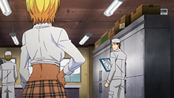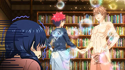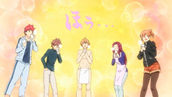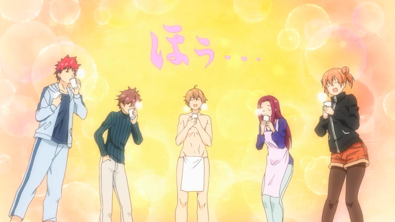 One of the aspects of this show that really make it sound out is definitely the imagery and hyperboles experienced by the characters. When I first started blogging, I thought “Wow… that was different.”, but as the weeks went on I can’t say that I’ve been terribly shocked by what Shokugeki no Souma has to offer. I’ve said it before and I’ll say it again, the scenes have gotten pretty tame, or perhaps I’m just growing immune to its awkwardness. It’s not until I see Megumi’s expressions that seeing a naked man’s butt in your face is supposed to be atypical. I mean, did your friends never just take their clothes off in front of you? I guess that’s just me then… >_> Anyway, the only scenes that make me laugh these days are Erina’s exaggerated scenarios of what she eats. I’m sure it’s never that bad, but with her taste buds, I’m probably wrong. I don’t really see the appeal to her unflawed character just yet, but I’m willing to be more open-minded if I actually saw what she’s lacking in development. If she’s truly who Souma is meant for, she needs to do a better job convincing me that they’re good partners and not just rivals at school.