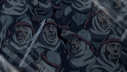 While it’s already confirmed the guy Narsus sent to his doom was a scoundrel, it is still pretty cruel that Narsus has no qualms about doing it. Guess we can say Narsus is still a ruthless tactician who gambles with lives, but from the looks of it he’s particular with the lives he’s playing with. I really think now Narsus wouldn’t carry out this plan using an innocent bystander. Come to think of it, Narsus did approve of Arslan previously when the latter chose to act at the thought Kharlan will endanger villages to find the prince. So yeah, Narsus isn’t completely cruel. This is the guy who was exiled for concern of the slaves’ wellbeing after all.