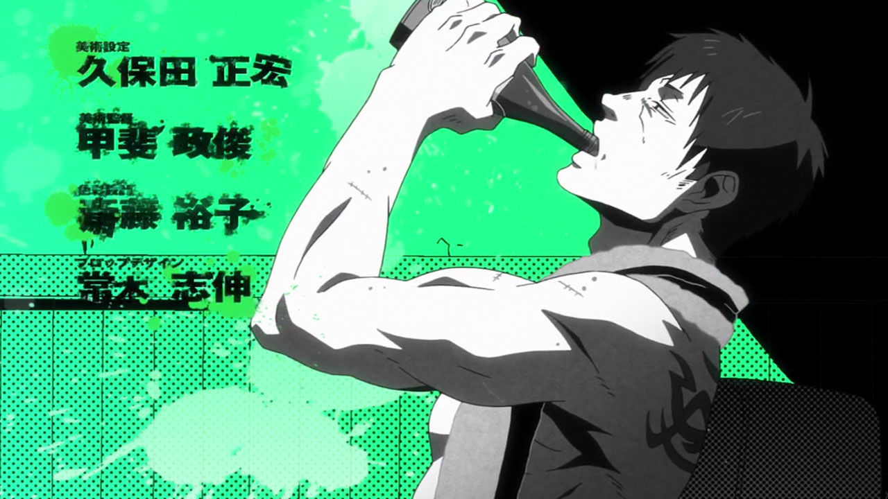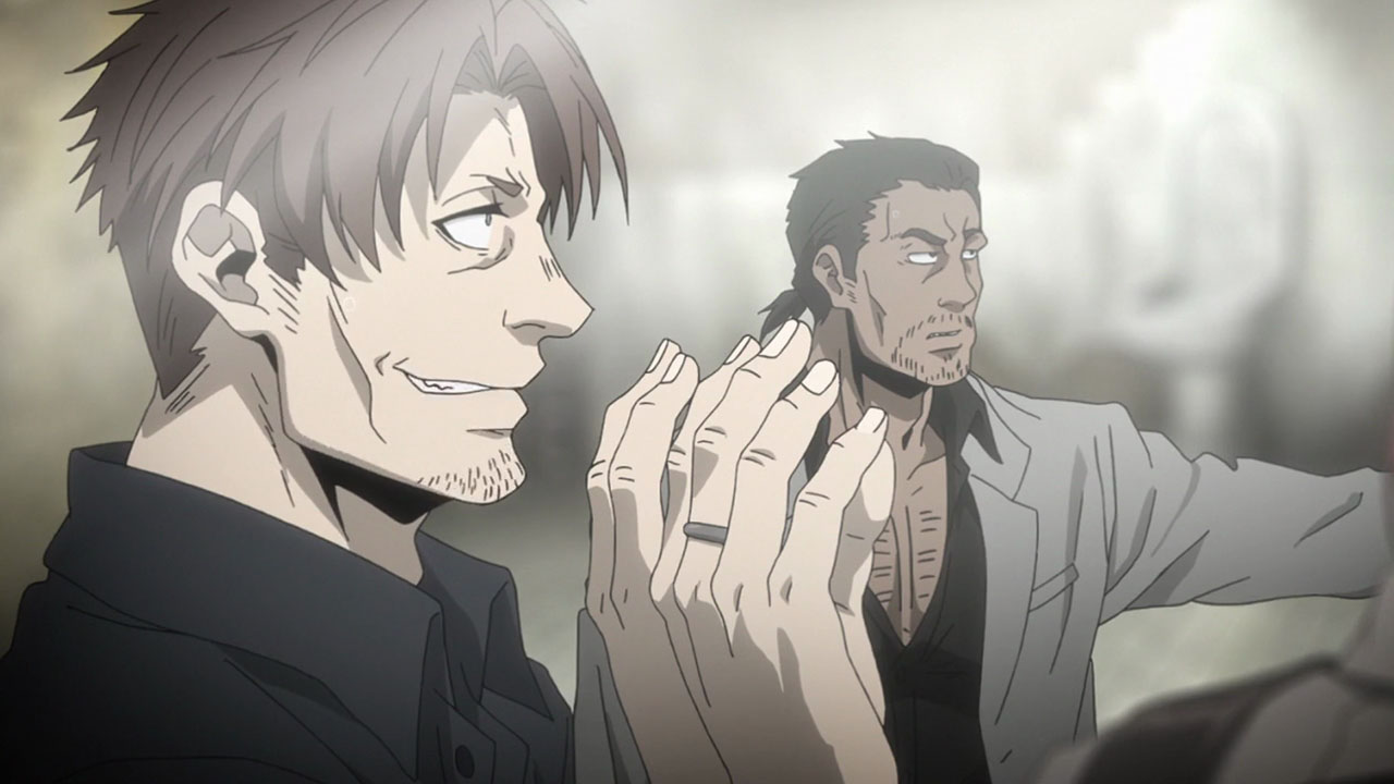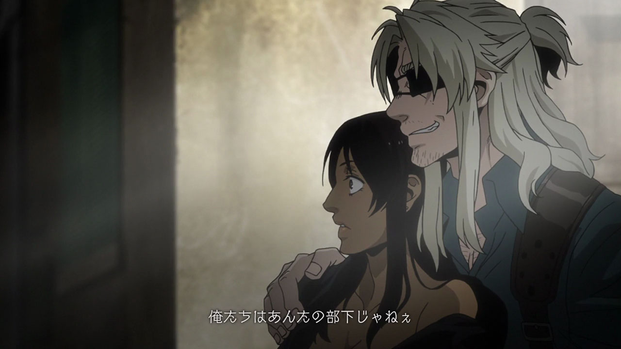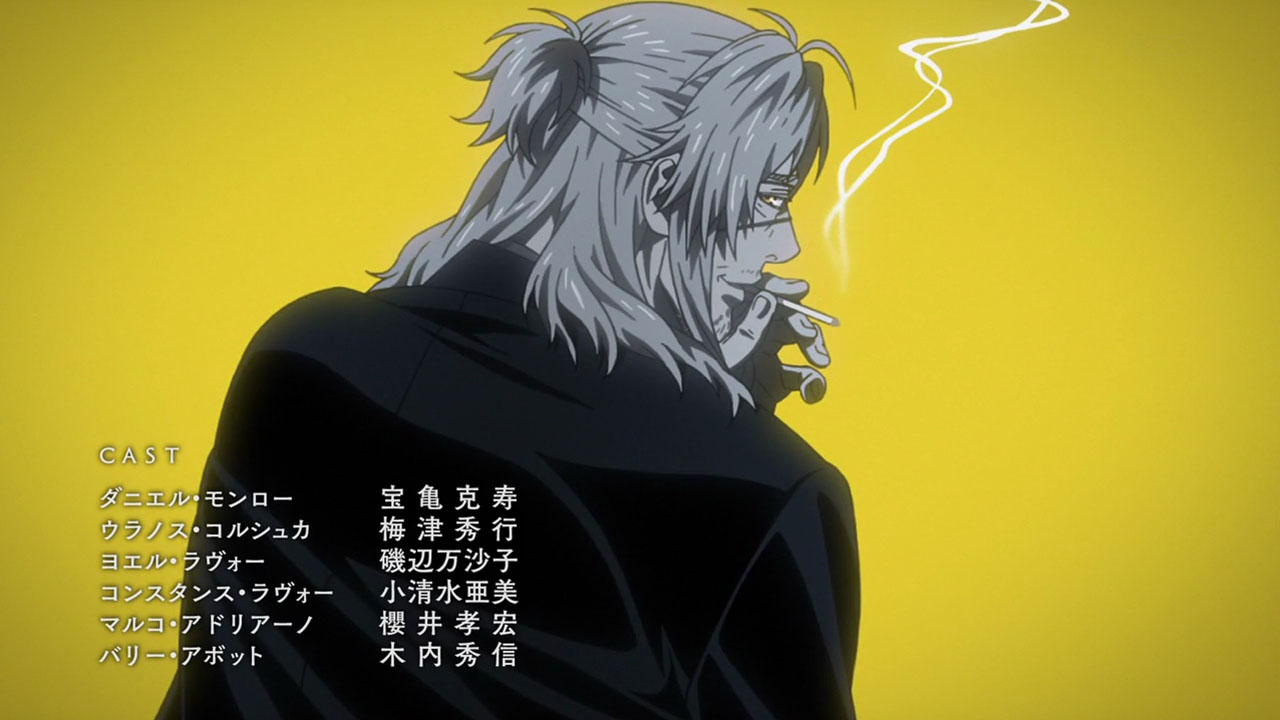 「NAUGHTY BOYS」Grimy Setting, Smooth Pacing: As with any good first episode, this one was all about introductions: the city, the characters, and their lives in this twisted setting. Ergastulum is an interesting place, which to me feels very Southern-European. I don’t know if there’s a confirmed location for this fictional city, but it stands out when compared to all the current anime set in Japanese high schools. If you’re looking for something that’s different, then look no further than GANGSTA. – from the architecture to the character designs, this as a unique offering when compared to most of what’s coming out this season. Before I dive into the characters and events that unfolded in this first episode, I’d like to point out how easy-going the pacing was. For something that promised to be dirty and brutal, I was expecting an episode jam-packed with action sequences and characters screaming at each other in a flurry of rage. But instead, GANGSTA. was distinctively quiet and smooth in its approach. Most of the episode was simple conversations, whilst managing to highlight the disturbing aspects of this harsh world. However, when the action did come, it delivered. But I did appreciate that this episode took it’s time and didn’t feel the need to lure us in with guts and gore from the get-go. Sometimes, just getting to know the characters is enough for a successful introduction. Nicholas & Worick: Our main duo were at the forefront for most of the episode, giving us glimpses of their personalities as we follow just another day in Ergastulum. Nicolas Brown (Tsuda Kenjirou) and Worick Arcangelo (Suwabe Junichi) make up ‘Benriya’, a business where they take on the dangerous jobs that no one else is willing to tackle. It’s a solid premise, especially with two characters that seem like complete opposites of one another. Nicolas is the most interesting of the two (for me at least), because he’s actually deaf. There’s not many main characters with disabilities in anime, and deafness is rarely touched upon. Obviously, in this case, Nicolas isn’t hindered much by his loss of hearing – apart from being not knowing when the phone is ringing, or know when someone is firing a gun behind him. He relies on his keen eyesight and can lipread to some degree, so as long as he’s got his eyes on someone, he’s not left out of the loop. Worick is much more extroverted and outgoing, who comes across much less serious than his partner. Of course, when things get dirty, he’s quick to respond with brutal means. I’m sure we’ll get some backstory as to how he lost his left eye, but it’s certainly not dampened his cheery mannerism or flirtatious nature. Alone, he’s not the most original character, but when paired with Nicolas, their contrasts make their interactions much more interesting. We also see a young Nicolas in the ED (which I really enjoyed, more than the OP), so I wouldn’t be surprised if these two have some deep-rooted history that explains their closeness. That would be something worth seeing. Ergastulum’s Factions: I covered the synopsis in the season preview, but with this first episode we’re already seeing hints of the different factions that make up Ergastulum. On one side there’s the police officers, namely the high-ranking official, Chad Adkins (Kanao Tetsuo), and his younger subordinate, Cody Balfour (Ishikawa Kaito), who request Nicolas and Worick to take on the jobs that they can’t. On the other end we have the four gangs that effectively control the city. Daniel Monroe (Houki Hatsuhisa) is the only confirmed leader so far, but I suspect the meeting he was having was with the other higher ups. Clearly, these top-dogs are going to play a big part in the story to come, so I’ll be waiting to see their proper introductions. Alex’s Hardships: But for now, everything comes down to a lone prostitute. Alex Benedetto (Noto Mamiko) isn’t in a position of power, like many of the characters this episode. She’s used and abused by the members of Barry Abbott’s gang, who are making a bad name for themselves. The scenes with Alex were hard to watch, even though I knew they were coming. I’ve heard a lot about her character and how sympathetic and likeable she is; And I can see that from this first episode. Still, sexual violence is something that is often inserted into stories just for shock value, and because the creators don’t think much of its implications. I’m not saying GANGSTA. is necessarily one of those series, but I’ll be keeping an eye on Alex’s character from here on out to see how the story treats her. She deserves to be more than a prop for the violent men of the series, and hopefully that comes to an end after this episode. At least Nicolas and Worick got the job done without second thoughts; these two much be so used to killing by this point that it doesn’t even make them flinch. But still, it’s Alex’s final gunshots that stood out to me. She’s finally free from captivity, and I’m happy for her. As much as Nicolas and Worick intrigue me, it’s Alex who I feel sorry for, and want to grow because of this. It seems I have an early favourite already. Overview – What’s Next?: Overall, this first episode met expectations. The pacing was easy-going despite the more brutal acts that we witnessed, and we got a solid introduction to our main trio. Nicolas, Worick, and Alex are an interesting combo, and I’m interested to see what dangerous jobs Benriya are involved in from here on out. I didn’t appreciate the repeated sexual violence against Alex, but she should be better off now. And hopefully she gets to do more than just answer their phone. I want to see her deal more finishing blows on those who deserve it – those who put other women like her in those horrible, unbreakable situations. That would be incredibly satisfying. Full-length images: 38. ED Sequence