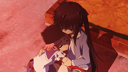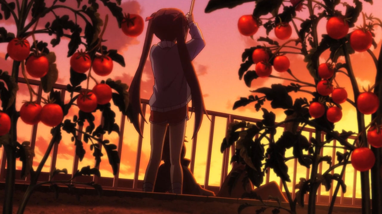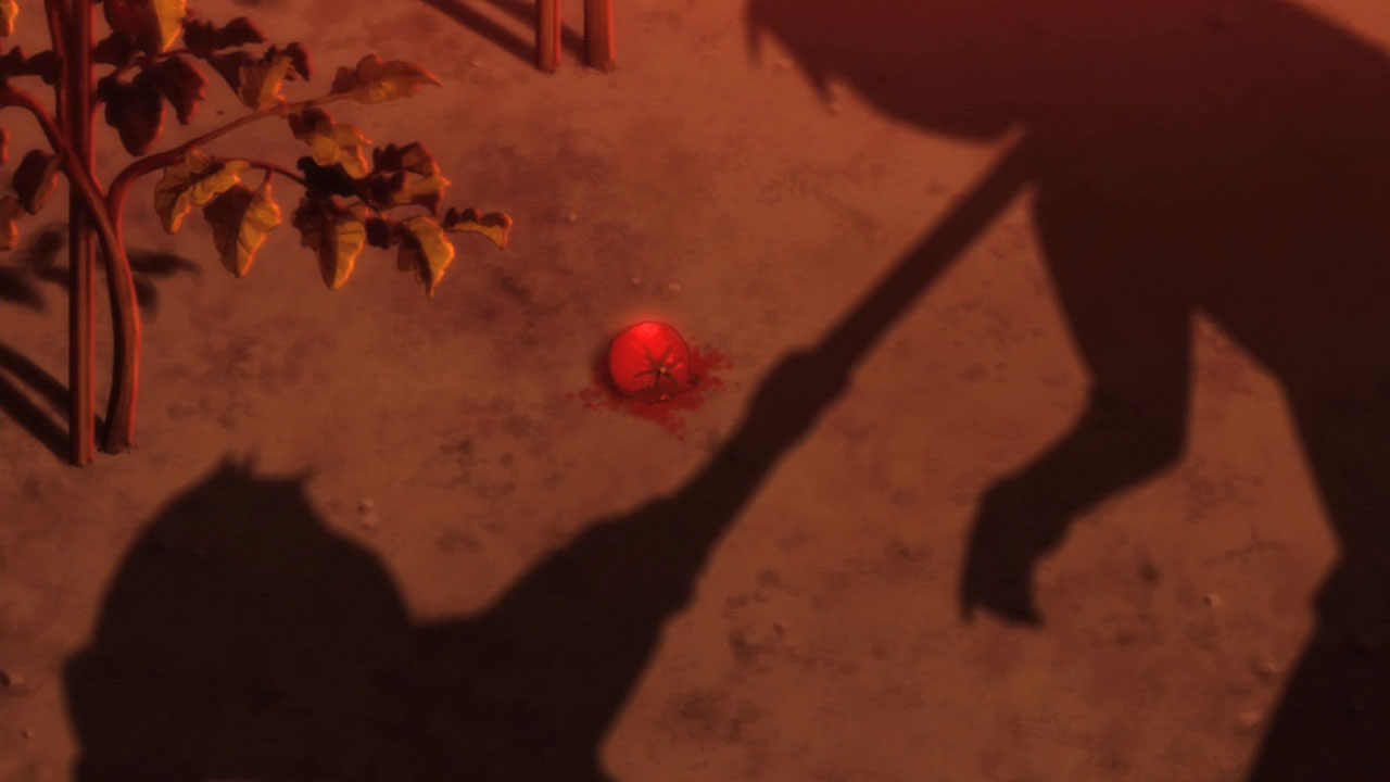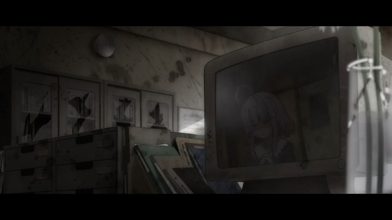 ….well. That was really, really expanded from a few short panels in the manga, and really, really effective – that lack of sound during Kurumi’s first time with the shovel was goosebump-worthy. I’m not quite a fan of the continuous news reports, explosions in the city, and such – that kind of thing’s been overplayed a lot, even High School of the Dead used it – but otherwise that was top-quality anime original material.
