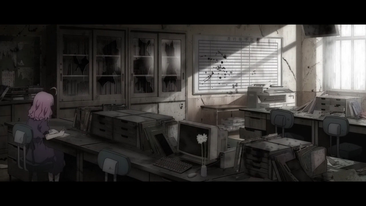Modify this with Zombies, and voila, you could get the same Base for the Outside World in this Anime, or perhaps the Source of this all.. But of course this is my Speculation to give myself a background so far