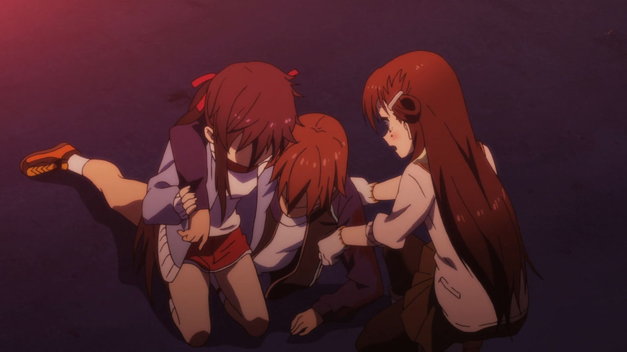 I just noticed something based on the flashbacks, Yuki’s life isn’t as happy as it is, being bullied by classmates, having bad grades,having no friends and the fact that zombie outbreak appeared andMegu-nee’s death, which is the only person who she can rely on may actually triggered her delusions. And the irony is that her classmates that bullied her are her friends in her delusion.