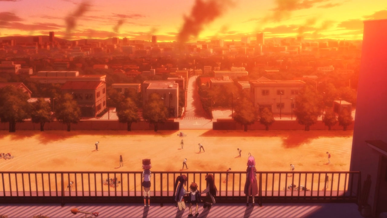 Y’know, it’s easy to get cynical about a show like this. Zombie apocalypses are rather overplayed lately (especially in the west), and just throwing a bunch of cute girls in one seems to be rather lacking in creativity from a writing standpoint. Despite those misgivings, however, it manages to use its elements well to an utmost degree. This show just nails it. The horror of the situation, the feeling of a life of survival, the looming threat in the background, all of it.