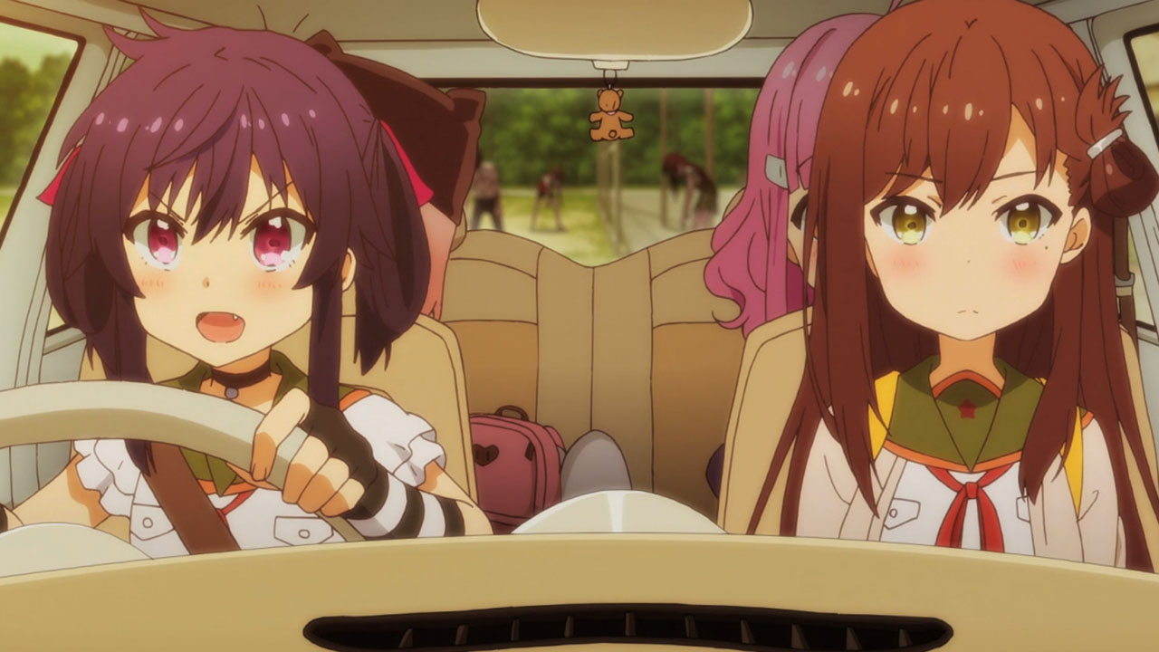 3) Megu-nee was already at the back of the car when Yuri got in, despite not following Kurumi to the car through the zombie hoard or following Yuki and Yuri through the barricade.