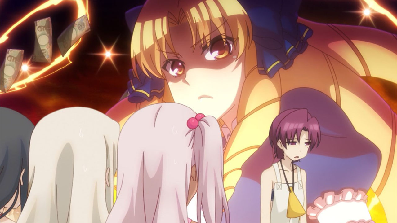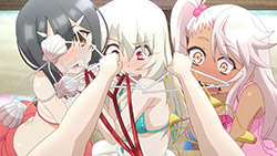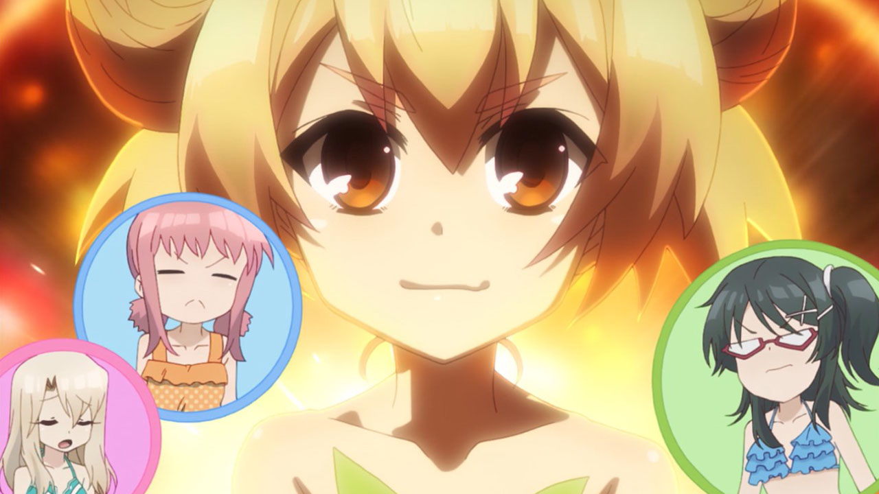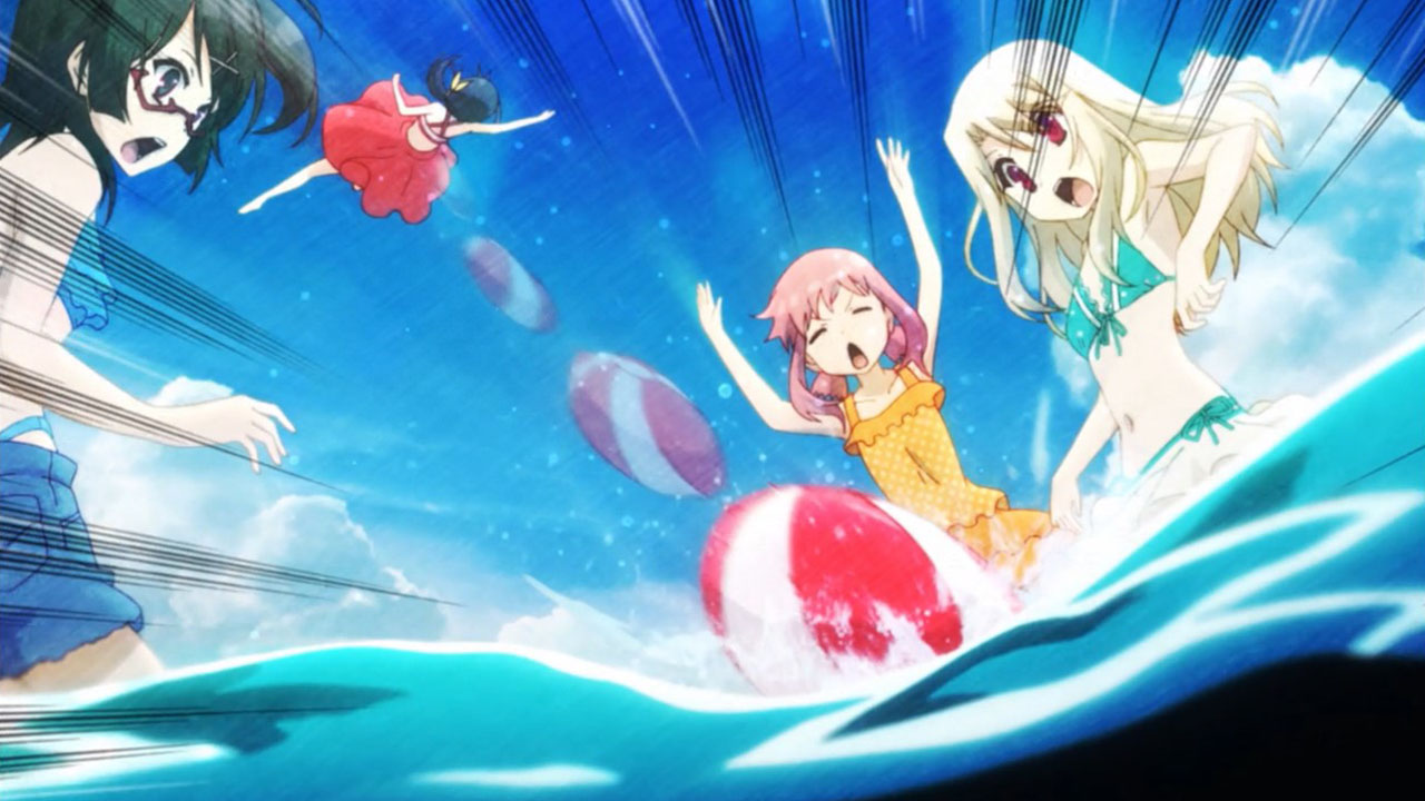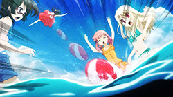 Tatsuko is just so unpredictable! And Illya has the cutest reaction faces, and there were lots of them in this episode. I also gotta say Luvia was sporing a pretty hot swimsuit too. It’s funny how Ruby and Sapphire are just the top ornaments of Magical Girl staffs but they exhibit so much personality. I can only imagine Ruby had a big smiling troll face when she was messing with Illya here, and Sapphire must have had a really angry piercing look when she was disciplining her sister.