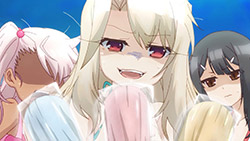 I’m sure some people will complain—it’s another comedy episode, why aren’t they getting to the plot, this is just filler, etc. A reminder: We only have a little more of the 2wei manga still to cover. After last episode, it was 10 chapters, according to Hanabira.Kage. With ~11 chapters total to cover in 10 episodes, the pace isn’t going to be as fast as other adaptation. But I ask you, is that so bad? We’re getting the full story here, in a way we hardly ever get in anime adaptations. I feel like I don’t need to list examples, but even my other show, Arslan Senki, is starting to suffer from excess streamlining, as some character-developing moments are sacrificed in order to show more of the story. With a show like this, it’s critical to get to the plot eventually, of course; otherwise you get something like Charlotte, which is (so far) all sizzle, little substance. But Prisma Illya has always gotten back to the plot, with the occasional pit stop off into full-comedy land. So to those who will complain, I say to ye: Give it some time. The plot will return, I promise you.