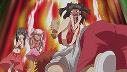 Happier note: You mean Ruby flying off into the wild blue yonder last episode had a point?! I thought she was just being nuts again XD Still, there’s something about the sudden appearance of a syringe that can get a nervous laugh out of just about anyone, which is good for loosening up the audience for the insanity to follow. I loved the reactions when Shirou turned to the loli-crew, and I think Mimi was a ninja in a previous life and now she just can’t figure out how to get out of stealth-mode… or she’s a distant relative of Kato Megumi!! XD
