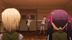 PTSD in its most basic, water-down explanation is the inability to accept what has happened. The anime didn’t show it as clearly so I’m not sure, but the manga hinted that Yuki was already imagining the school still in tact at Megu-nee’s advice just to get through the day, and then Megu-nee’s death made her forget that what she was imagining wasn’t real. She couldn’t cope, so she chose the easiest root on her mind, and literally expelled the memories of everything that had happened by turning them into Megu-nee. She’s Yuki’s danger-instinct, and in the way that Kurumi pointed out, almost a sixth-sense. I said it before in spoilers, but Yuki has gone the way of Russell Crowe’s character in “A Beautiful Mind.” They’re all her thoughts, she just doesn’t realize that she’s the one having them. It’s a really interesting character choice that works just a little differently from other hallucinations that I really can’t explain properly.