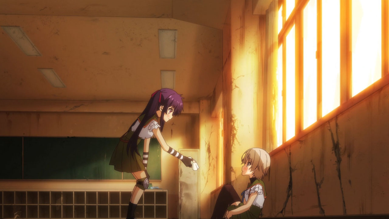 After a getting a bunch of hints throughout the past few episodes about what was to come, let me put that to the side for a second and start this post off by taking a slightly closer look at Yuki and her Post Traumatic Stress Disorder. Technically I guess you could call this PPTSD since the cause of it all was the loss of Megu-nee, but semantics aside I think we have to give some credit to Yuki for managing to keep her cool for as long as she did. Because when the world’s falling apart and everyone outside a small building is probably dead or worse (worse than death, what a concept haha), it doesn’t seem all that hard for someone to breakdown once the cold truth of reality starts falling down upon them. But judging from what we saw, it looks like Yuki was able to keep up with things for at least a little while!