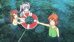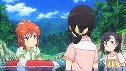 While we barely get to see Hika-nee since she’s off in the big city doing whatever girls in Tokyo do, I’ll never pass up an opportunity to see her – especially when her inclusion makes for a really fun and interesting episode. Specifically, I loved how things didn’t focus on her typical need to show off that she’s become a “city girl” and instead brought out the true Hika-nee from within. From wiping herself down with her clothes to leaping straight into the river without any hesitation, she ended showing us just how down to earth she really can be. Sure, there were some clear moments when she let her city-side take over, but luckily it never came on too strong.