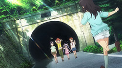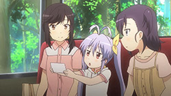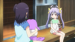 They really got some interesting stuff in their neighborhood, like that free water by the road and that honesty fruit stand beside it. If I saw a free water stand like the ones Renge, Hotaru, and Hikage passed first thing I’d likely question if the water source is clean. But in these girls’ case, I guess they don’t need to worry about those things since their countryside is so nice and clean. Not to mention I really like the concept of those honesty stores where they just leave the products in the open and you just leave the payment there.