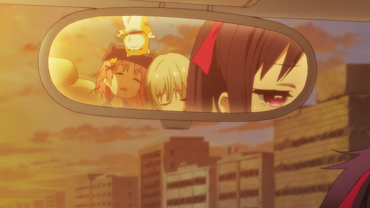 I figure the key means we’ll end withKurumi cured after getting bitten, then the girls exploring the emergency supply room. Can’t see them going too far past that and have it still feel like an ending. That’ll take 2 episodes, and they still have a few more SoL bits to use in the meantime.