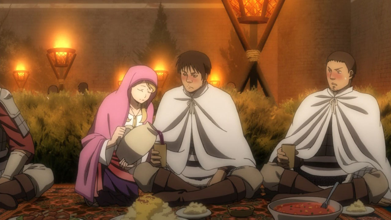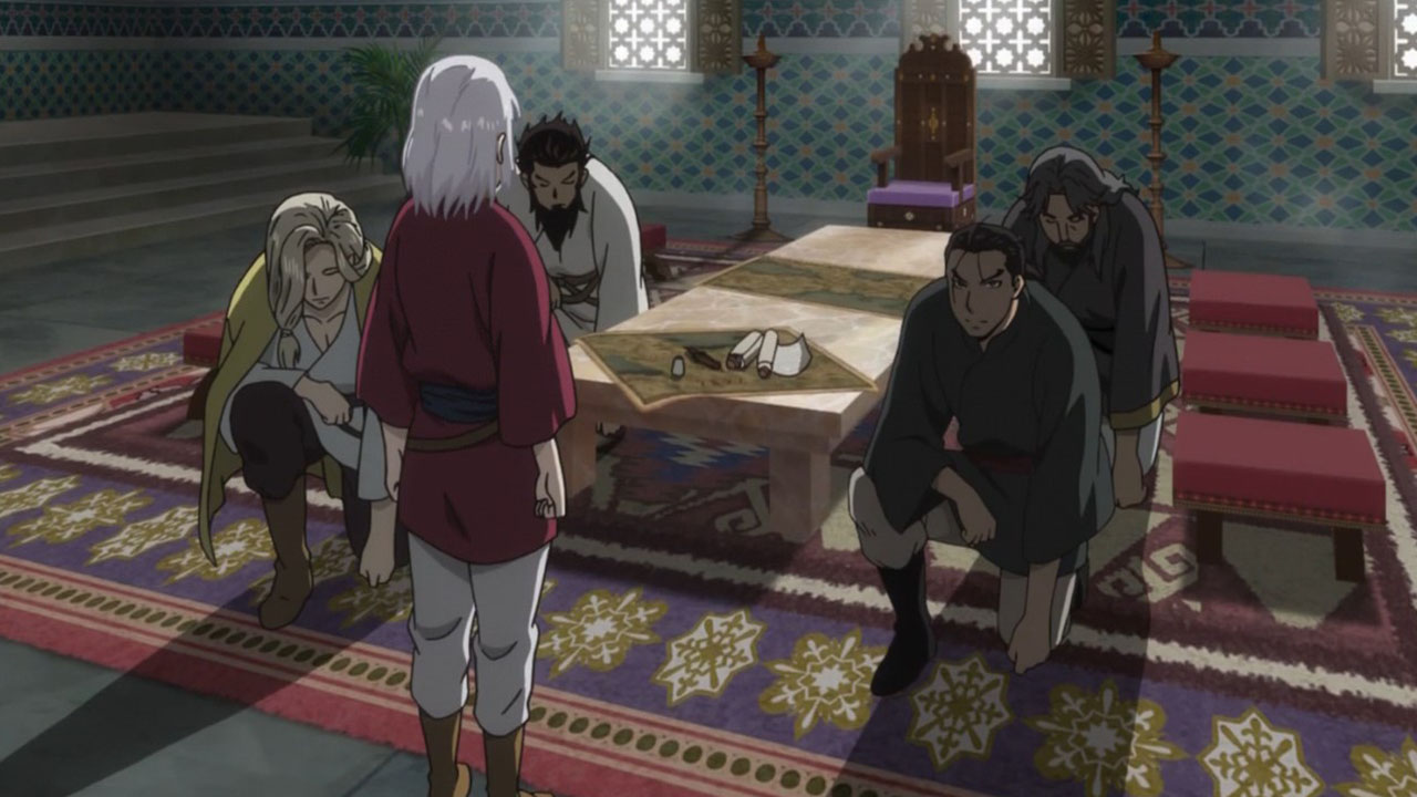 Why add half an ep of filler about Arslan expressing doubts NOW? In the very least, have him waffle a little bit before he signs two very blunt documents stating his goal of taking back the throne and what he’s going to do when he’s upon it, especially since the anime went so far as the add the scene where Silvermask told the entire castle who he was two novels before Arslan actually found out.