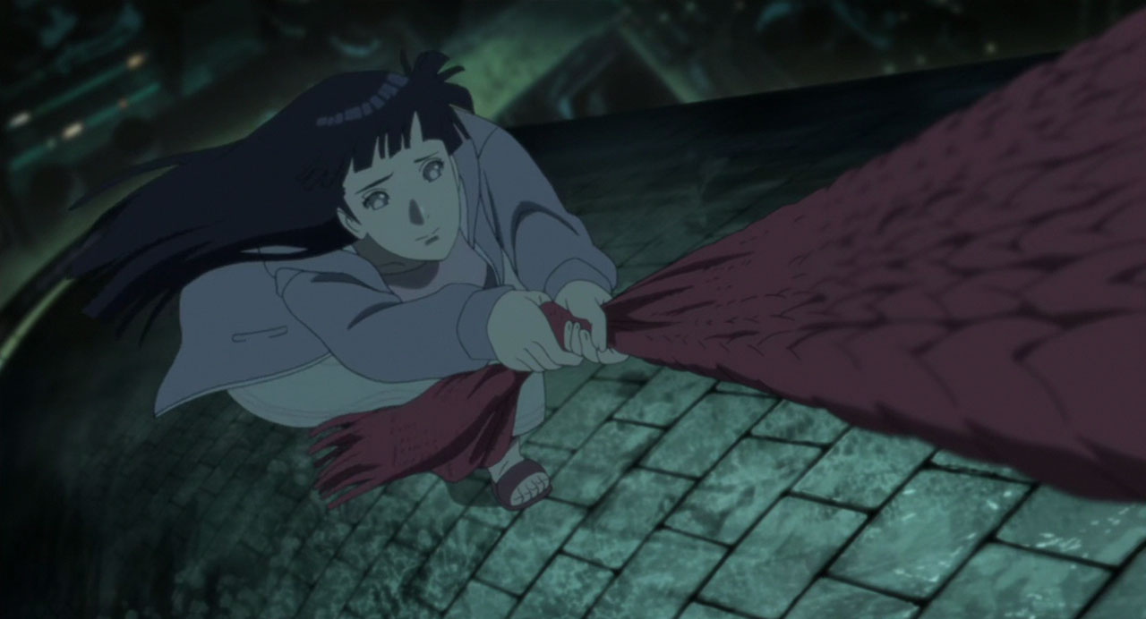 There’s also the fact that Hinata being teased for her eyes makes no sense. The Hyuga are one of the most renowned, well-known, and respected clans in the village. Not to mention Hinata is the daughter of the Clan Head and should have had a personal bodyguard who should have stepped in to stop it if such a thing really did happen. Otherwise, it’s clearly just copying Sakura’s childhood situation when she was teased for her forehead (that Ino stopped). It also seems like Hinata has just completely forgotten that she is a kunoichi at various points in the movie while further showing that she has absolutely NOTHING on her mind, except Naruto (that’s obsession, not “love”). Even with Hanabi kidnapped and having her eyes torn out by Toneri, Hinata cared more about simply being with Naruto than saving her own flesh and blood little sister.
