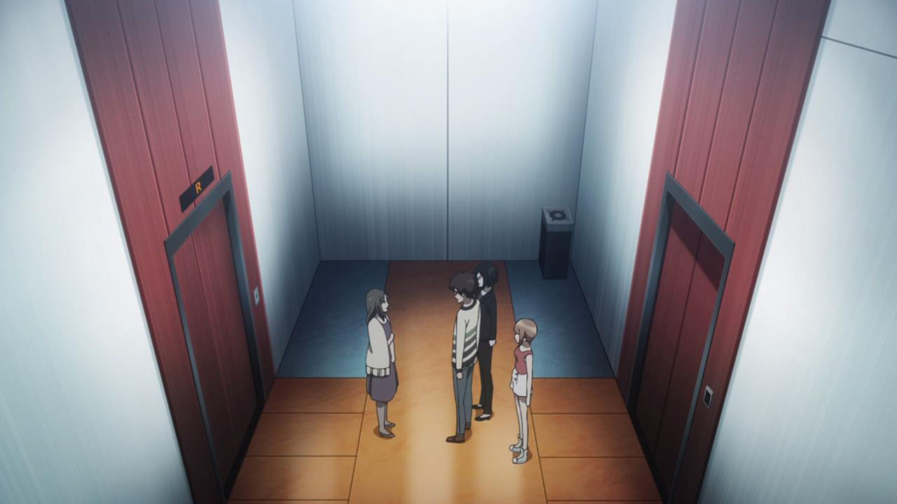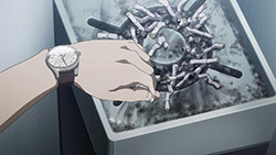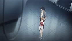 In that vein, the clues continue to pile up, though at this point in the tale we’re probably not supposed to really know what they mean yet (suddenly, a marimba? That has got to be for something). In fact, it’s fairly expected that the answers will mostly be obfuscated. Our ad hoc detective Souhei went into Deep Blue mode and seems to have figured something out (don’t ask me what the, er, dawn of man has to do with it though) but he’s cut off before we can hear most of his conclusions. I suppose we won’t have much of a mystery unless we’re all… mysterious about it. Thankfully, the facts of the case are still relatively easy to follow—again, locked-room murders should bear a certain degree of familiarity. I’m worried that the other, seemingly-unrelated-for-now details will slip through the mental cracks, though. The philosophising, and quibbles about vocabulary, the snippets of code are without the context for now, which just prompts my brain to forget about them. In particular, snippets of Moe’s past conversation with Dr Magata (I suspect they both have photographic memories, by the way) are always cryptic, in that they sound important but I can’t figure out how yet, so I just mentally pass over them. It’s probably easier in the novel, which one can marathon, but keeping track of everything on a weekly-anime basis is too difficult for me. Good thing I’m taking notes, for this blog’s sake. I suspect Subete ga F ni Naru is one of those shows that require a second watching, just to pick up on all the themes and hints that one will miss.