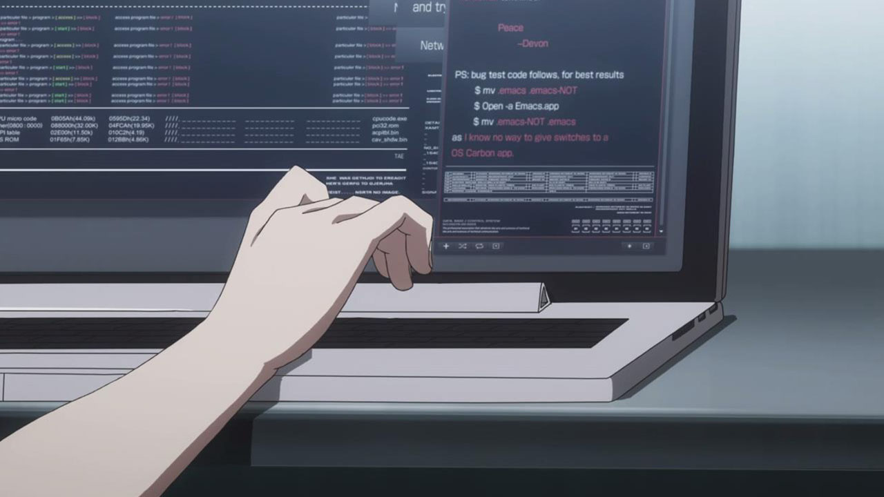 Subete ga F ni Naru cleaves closer to form this week, as what we have is a good ol’ locked-room murder, the perennial favourite of the mystery genre. There is only one entrance to and from Dr Magata’s room, it and the elevator to the level are constantly monitored, and the goods hatch is too small to fit a human, and also seems to be locked. A murder seems impossible, a suicide just as much. The extra twist, and what updates Subete ga F ni Naru for the modern age, is the possibility of electronic assess, especially since the body of Magata Shiki (is it?) rode out on a robot. But the titular Red Magic OS is, we have been told, completely isolated from the outside and unlikely to have an error. I’m expecting foul play from it all the same; I mean, this is your logo for Red Magic? I’m expecting Deborah to sing Daisy Bell before the season is over.