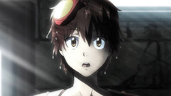 In that scene, they were clearly saying, “We need to mention Sougo’s motivation,” so they had something happen that would trigger that. There was no real connection between Kaon and Sougo. Kaon’s questions were just vehicles for character exposition, which is as boring as world exposition. Done well, the two should be wrapped together. Here, they’re not.