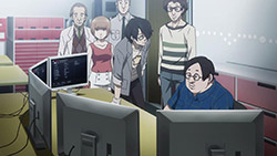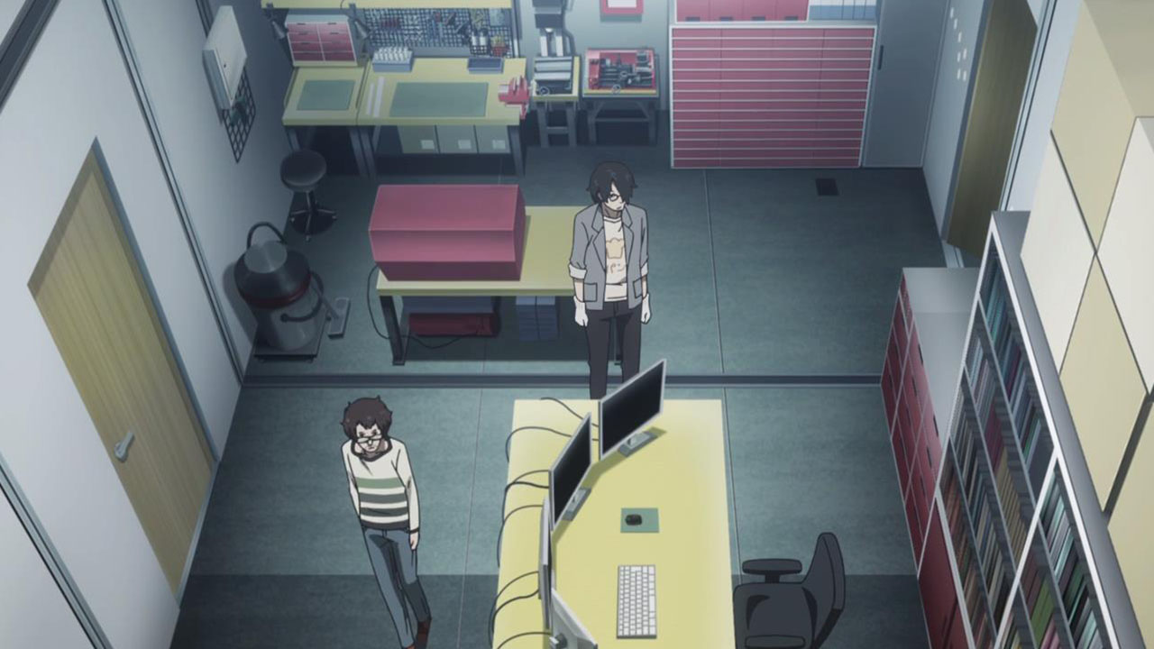 If Subete ga F ni Naru was an adventure game, we would get a notification of ‘Area Unlocked!’ before being allowed into Dr Magata’s room(s). As always, there’s a lot of little clues that we can only file away in our memories for now, because you can be sure that Subete ga F ni Naru isn’t going to start explaining itself now; it’s only the fourth episode! We’re far from the reveal; in fact, we’re still really only just up to the ‘wild postulation’ part of the story. Were her limbs finely diced and thrown in the garbage chute? In the robot? Fed to our protagonists for supper? Characters throw out ideas willy-nilly to try to provoke the audience to guess as well, which is fun but probably ultimately fruitless. For one thing, they’re still stuck on the idea of murder, but with no blood or signs of struggle, the circumstances gets stranger still.