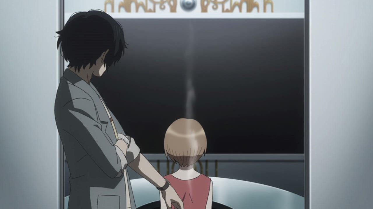 Apparently Souhei was around while Moe was still in elementary school (and felt some kind of way about her putting on a frilly wedding dress back then), and, I feel like the conversation between Magata and Moe implies he was there when Nishinosono couple bit the dust. Which – and I totally called it last week, four for me – elevates the whole obsessive dependency thing to the new levels of unhealthy; but, eh. Par for the course for the series.