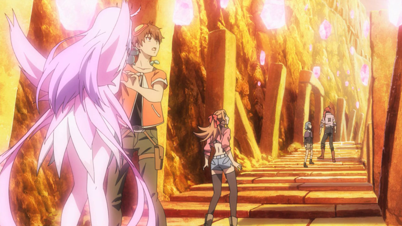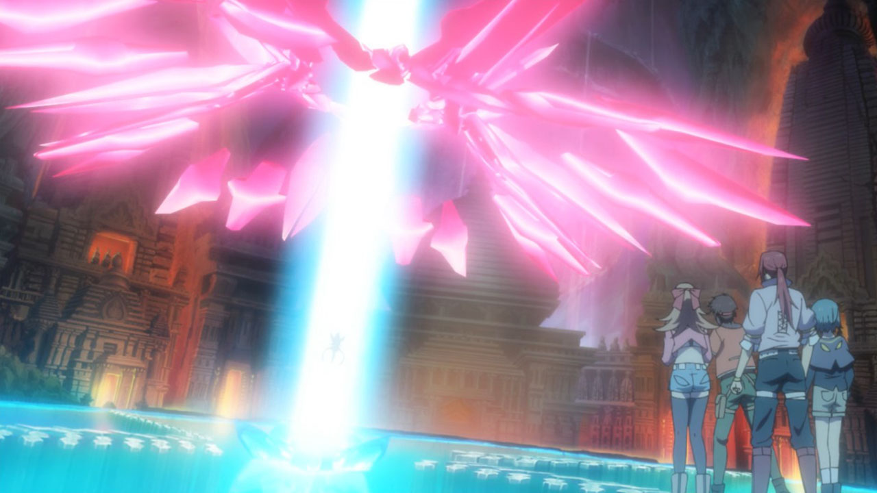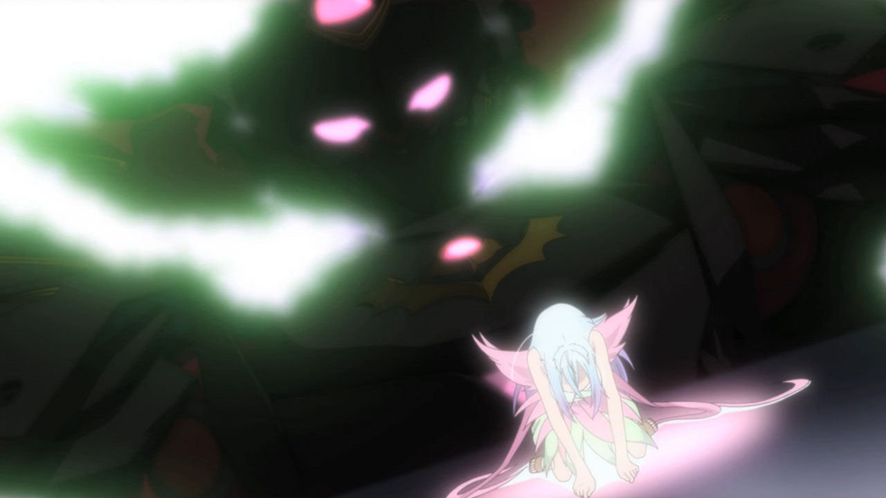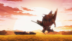 So they find the tree temple they were looking for, and Felia gets swallowed up or some shit, and a new mech appears, which swallows up Felia, so naturally Sougo calls the Moura-mech and attacks because … why, again? The black mech had done NOTHING aggressive up to that point. It could have been what’s supposed to happen when Felia reaches the altar, and she could have still been conscious in there. What if that was all according to plan, and Sougo killed Felia by accident when he attacked?