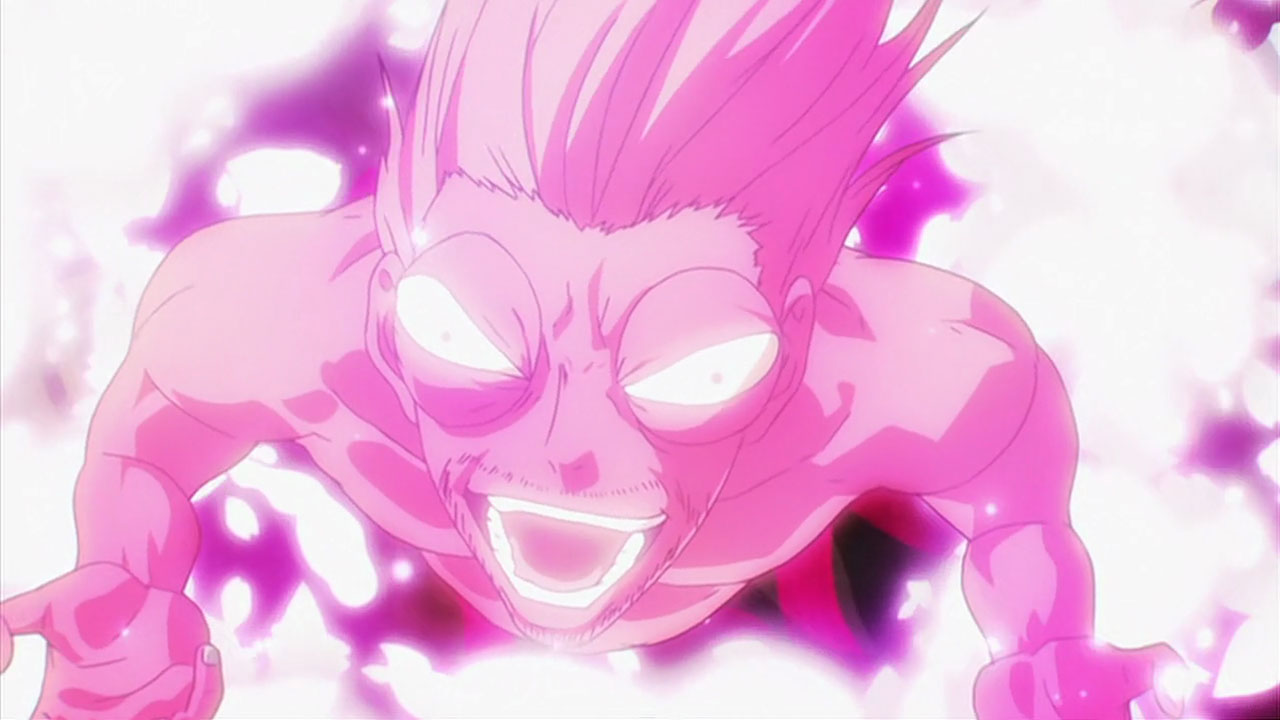 Of course there are stereotypes, but not all of them are as loaded as one another. As for Atomic Samurai, what can we tell about his character from this episode? We know he’s ranked 4th and he doesn’t like being called old – the fact that he’s a samurai ‘stereotype’ doesn’t define his entire character, whereas Puri Puri Prisoner’s routine so far seems to be based entirely around him being a walking, talking Gay Joke. 80% of the stuff that he says revolves around “pretty boys” and when he does get involved in the action, he strips naked. Also factor in the reason why he was jailed in the first place, because that’s arguably the worst part of all. His entire character is defined by his stereotype, unlike Atomic Samurai or Silver Fang; their stereotypes are used as a foundation to build characters that have more to them than being that single Thing.