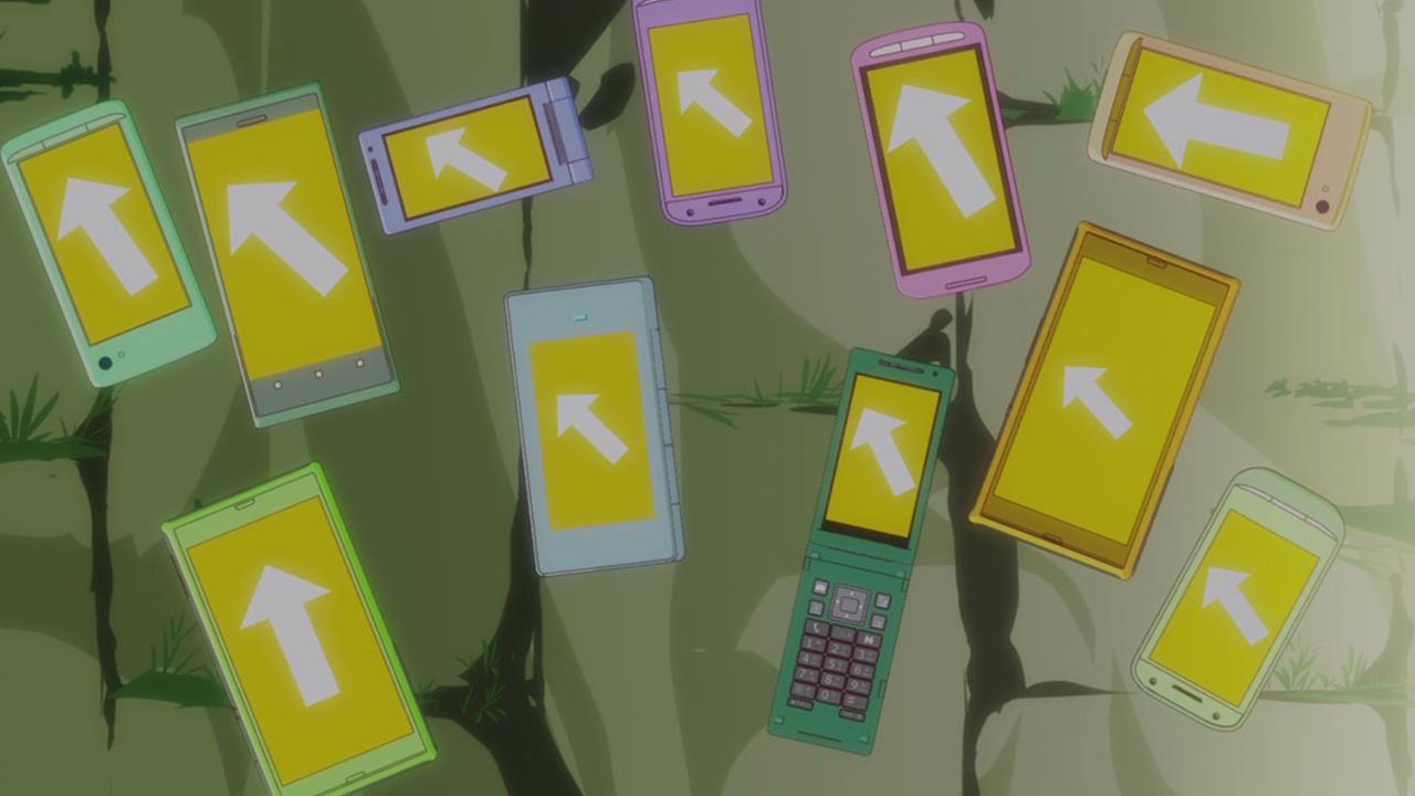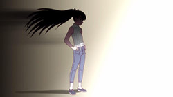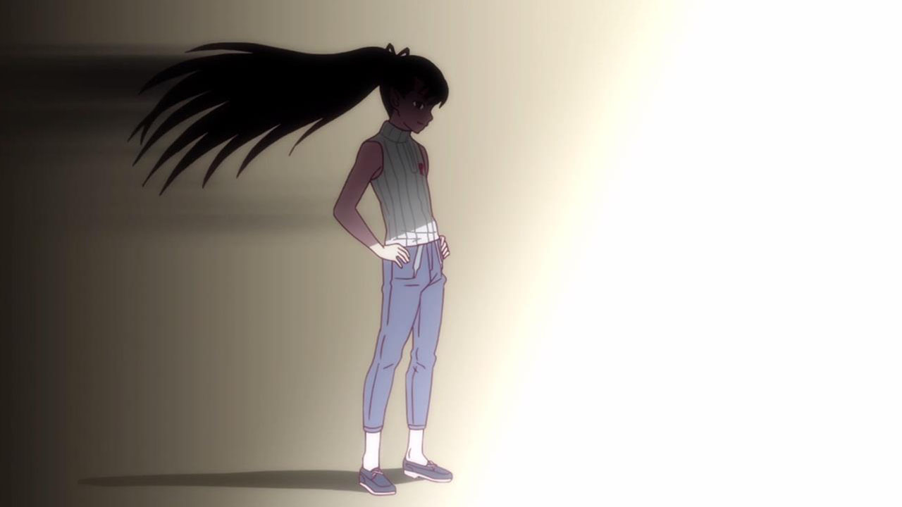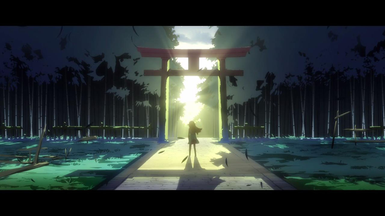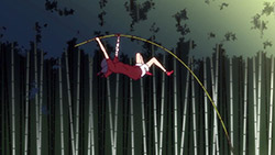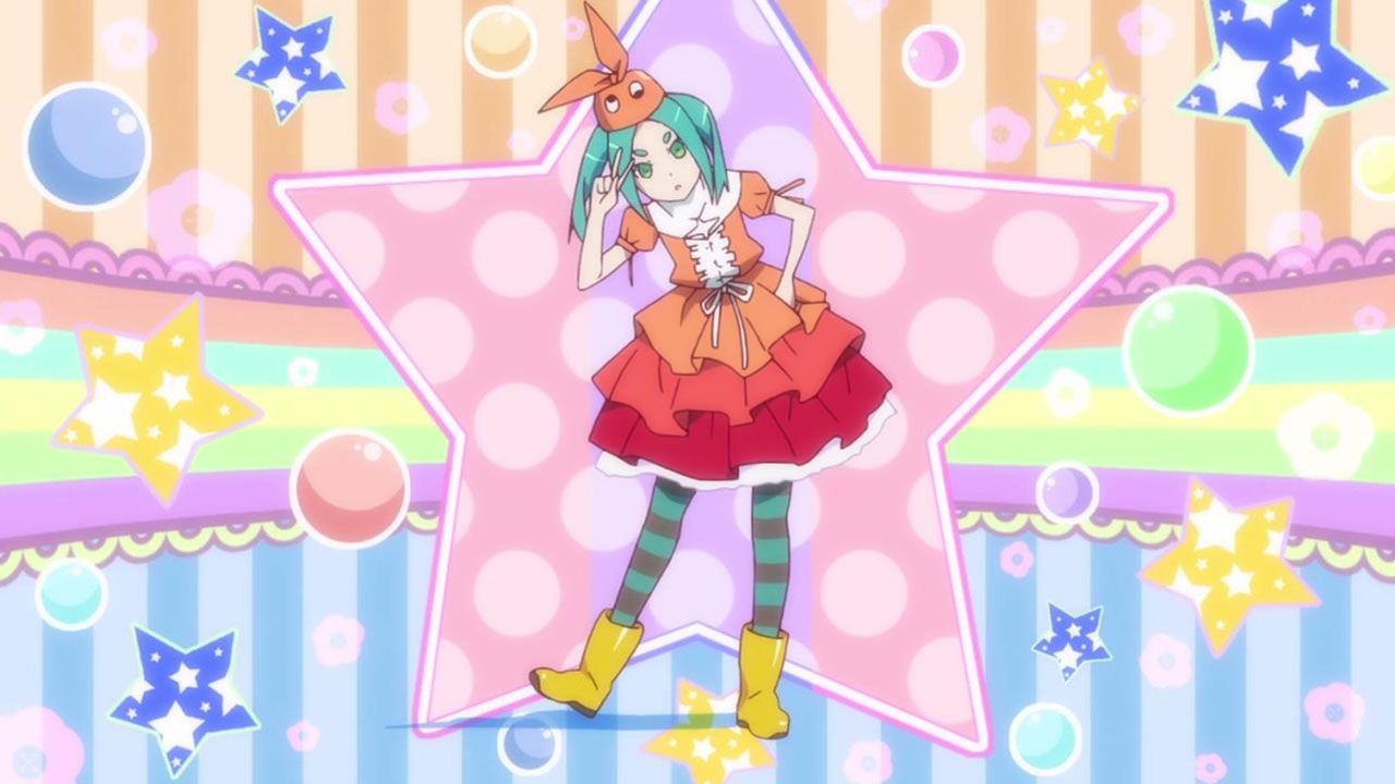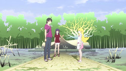 If the third part of Shinobu Mail last week was a thorough showcase of Monogatari‘s visual style, the fourth part is probably equally representative of its writing. That’s not to say that this week diverges visually from the norm that we’ve come to enjoy from the team at Shaft (that is, no norm at all). There’s head tilts, familiar cardboard people, floating text, non-sequitors, obvious metaphors, less obvious metaphors, and things science can’t explain aplenty. The first half is but a continuation of the Gaen Story Time after all, though perhaps scaled down. Gaen, done playing god, has retired to the director’s chair. In her story, though, and in the goofy, tension draining comedy that follows it, one can see the essence of the writing of the Monogatari Series. That is, the fact that it’s untranslatable.
