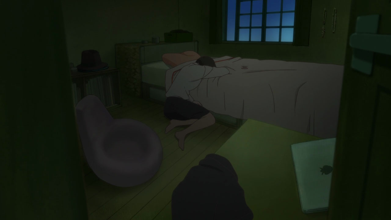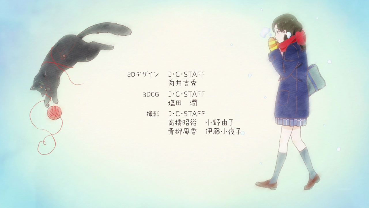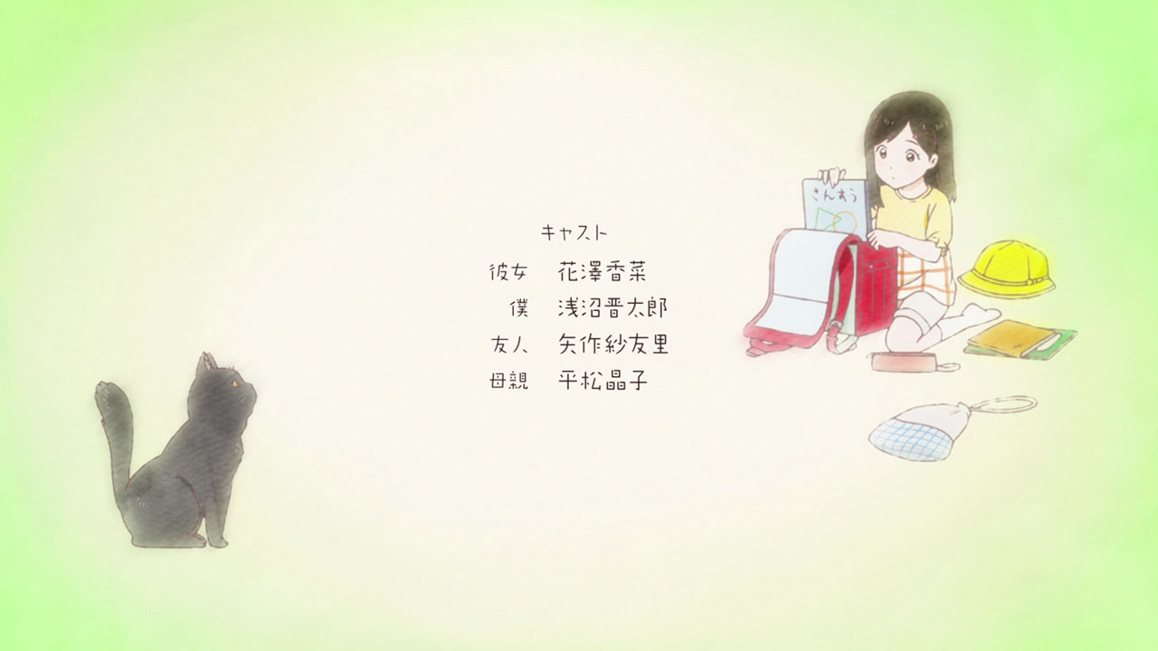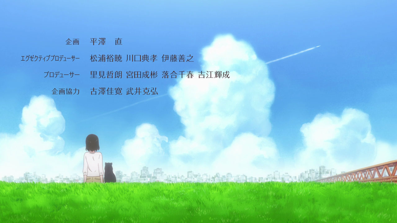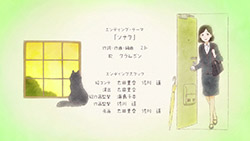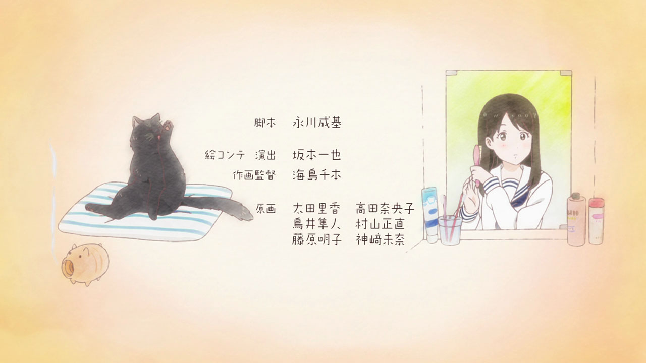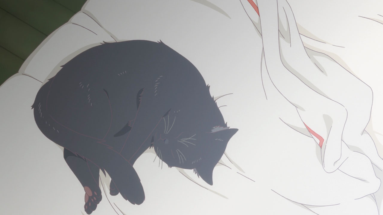 “She and Her Apartment”An Interesting History: Shinkai Makoto’s famed short about a job hunting girl and her loving black cat gets a picturesque remake, and it’s just as depressing as I remember. This little gem has an interesting history that had a lot of people (myself included) excited about what was on offer here. If you’re an anime fan, you’ve likely heard of the director, Shinkai Makoto (5 Centimeters Per Second, Hoshi o Ou Kodomo, Kotonoha no Niwa). If you haven’t, then I’d highly recommend checking out everything he’s worked on; his name is synonymous with gorgeous visuals and melancholic stories. But 14 years ago, when he wasn’t as famous and beloved as he is now, he put out a five-minute long depressing black and white short about a girl and her cat, and despite it’s simplicity and tiny length, it has accumulated much acclaim over the years. Fast forward to present day, and we’ve got this modern remake, which is clearly the more visually appealing – not only for an anime nowadays, but especially for a short. If you felt you were watching a Kyoto Animation production (despite this being produced by LIDEN FILMS), then you wouldn’t be mistaken, as this is produced by an ex-KyoAni member, Sakamoto Kazuya, who worked on titles such as Kanon, K-ON!, and Chuunibyou demo Koi ga Shitai!. That particular flair can be felt throughout this episode, from the detailed closeups to the smart use of blurs and composition. It’s an identifiable style, and a good example of what KyoAni could produce if they dealt with more adult material more often. The Failings and Hardships of a Job Hunting Graduate: I was but a youngster who did not know the bitterness of the world when I first watched the original short. Now, several years on, this hit home harder than I could have anticipated. The story is simple, but excruciatingly relevant to me (and likely many others). It’s about a nameless girl referred to as ‘She‘ (Hanazawa Kana), who lives alone with her black cat, Daru (Asanuma Shintaro) after her flatmate has to move away. With her almost graduating, she’s beginning her job hunting to try to find something to pay her bills and keep things steady. It sounds monotonous and potentially boring, but as it’s told through the point of view of the cat, it provides an outsider’s perspective on what our main character is struggling through. There were plenty of moments that stuck a cord with me, like seeing her practicing in front of the mirror, repeating lines for her job interview that sound totally unnatural. She then receives a phone call from her mother who gives her grief and insists she return home. But the moment that affected me most was when she returned after a long day of failed interviews only to kick off her shoes and collapse onto the side her bed. From the point of view of her cat, he’d been waiting all day and is thrilled to see her, providing what little comfort he can in her time of helplessness. It was a short scene, but seeing her slumping over in defeat, reading messages of encouragement that only made her feel worse… it hit me hard. I can totally relate to everything this girl is thinking – right down to the ‘I’m already doing my best” – and so I’m hoping that this short will provide more closure than the original, and perhaps more hope for people who find themselves in a similar situation. Overview – What’s Next?: I expected this to be good after I read over the staff list, but this packed an emotional punch that I wasn’t quite expecting. I put that down to me watching the original when I was too young to understand what the main character was going through, and now that I can relate… it hurts more than I’d like to admit. But there seems to be light at the end of the tunnel, and even when things aren’t going well it’s hard not to love that little cat. With three episodes left, I can’t wait to see what’s to come. Hopefully it won’t get more depressing than this, but part of me suspects it will. ED Sequence