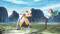 Aqua is probably my least favorite, which is the wrong way to say it; she was just outshone by the others, and had the thankless job of being a complete idiot. But she was hilarious, and the show wouldn’t have been nearly as funny without the albatross that is Aqua around Kazuma’s neck. Megumin is my personal favorite, as an explosion fetishist myself, and she’s both cute, earnest, and loyal on top of her dysfunction. Darkness’s masochism is hilarious, but I loved her honor and loyalty as well, even if her best moments were still when she was in full-on pervert mode; she’s the one most at risk of becoming a one-note character, but so far that hasn’t happened. Then there’s Kazuma. His genre savviness and insane luck stats were funny, and made him surprisingly effective, but it was his personality—a mix of honorable and petty, with plenty of snark all over—that made him both relatable as well as his own person. That’s a tough trick to pull off in a main character.
