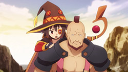 I’m tempted to list out all my favorite jokes from this episode, but that’s boring, so I’ll just briefly mention a few: Megumin being called the crazy girl and Wiz being called the destitute shopkeeper; Kazuma saying that yes, Darkness is that perverted; Kazuma ruining the poignant moment by saying her real name; Aqua’s battle face; Kazuma’s genre savvy about those cliched phrases; the succubi protecting the city in their own way; the old dead Destroyer creator and how much he sucked; Kazuma being the one male lead who expects the right thing, only this time it’s actually the wrong thing; Megumin’s gasp and blushing face; Megumin’s new fetish; and Kazuma getting shafted, because of course he would.