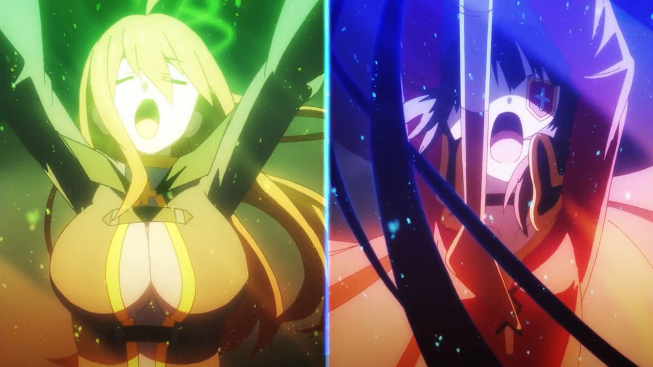 The first phase of the battle against The Destroyer was awesome! From Darkness’ last stand to Aqua forcing down the barriers to Wiz and Megumin’s twin nukes battering down the Wild Wild West reject, it was just damn, damn cool. And I liked too that Kazuma’s contributions—talking to Darkness, bolstering Megumin’s confidence—were important, but not outsized. The dude is no Mitsurugi. Him taking center stage would have been odd.