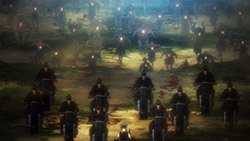 And i hope you didn’t buy any of the crap he is saying about liberation, cause that makes you as naive as Mumei who just realized it was a bunch of blatant lies (as she says at the final scene), none of that stuff was ever really his goal, it’s just hogwash he uses to keep his brainwashed followers under control and fighting despite the atrocities he makes them commit, but it seems the close group of followers (like Horobi and that other guy who captured Ikoma) know that all of this is actually about revenge and nothing else.