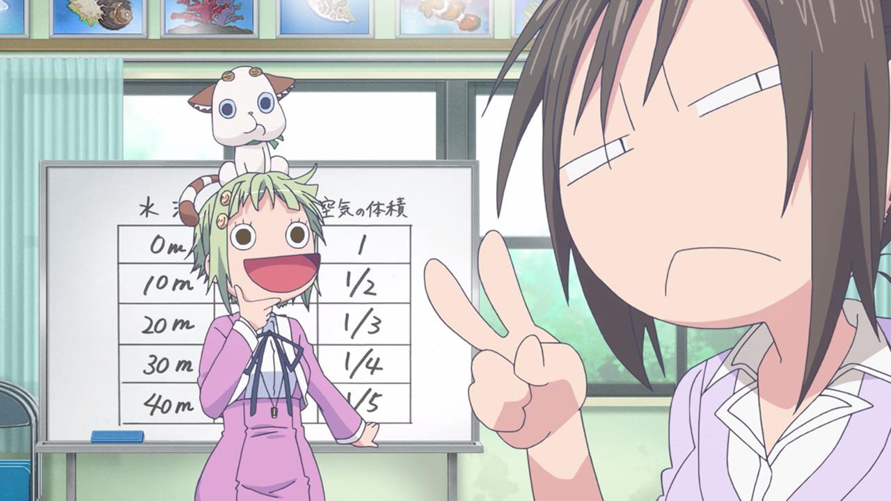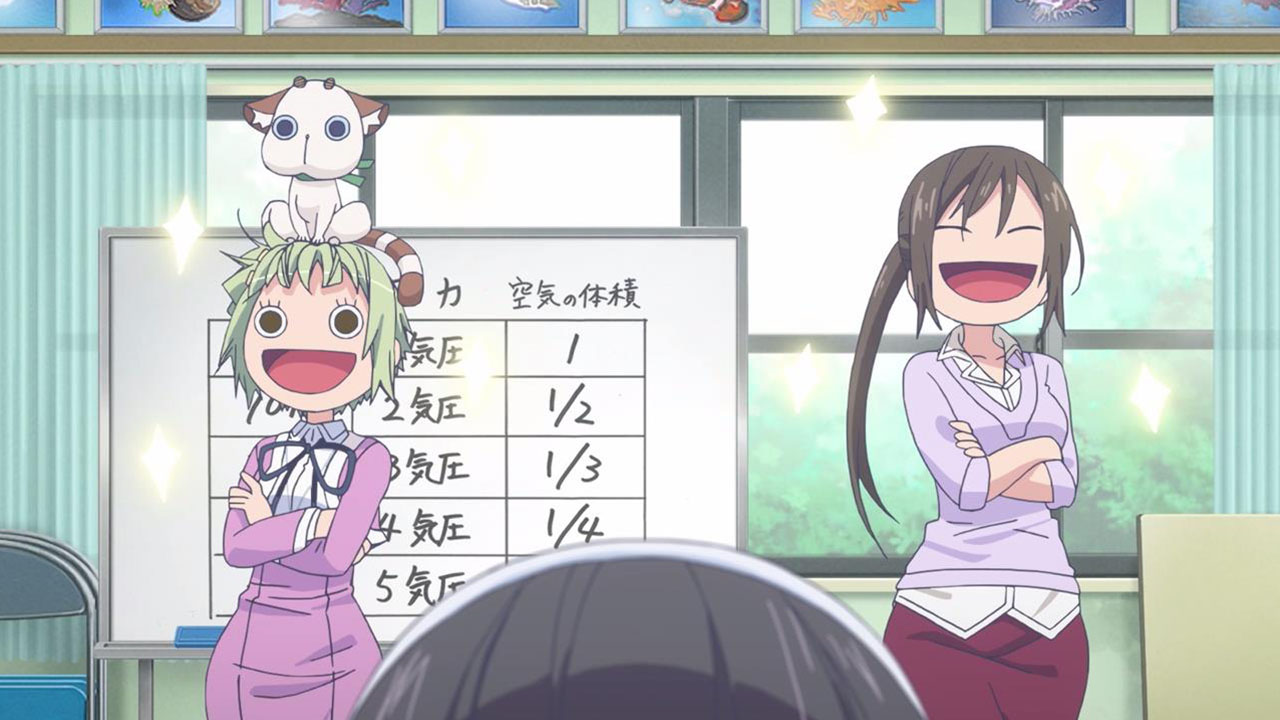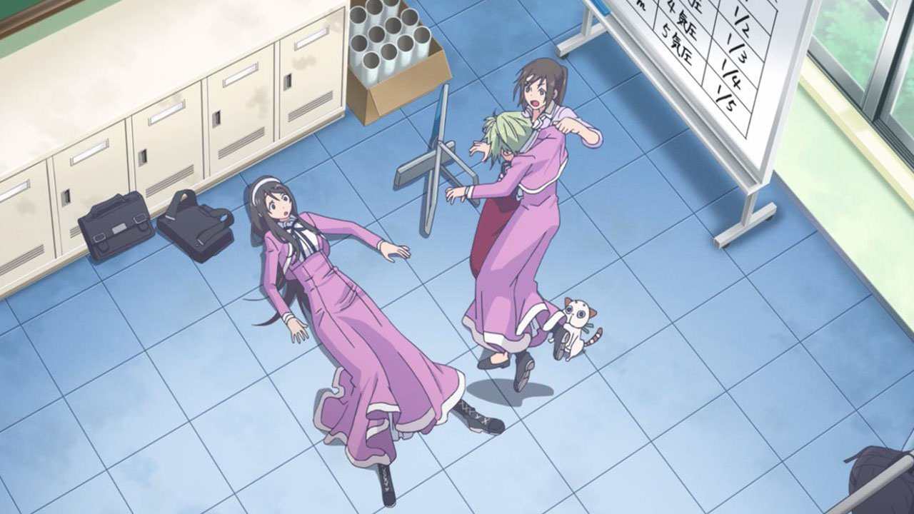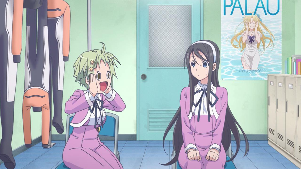 The fundamental reason why Teko is so insecure about moving from Tokyo, amongst other things, is that she is a self-professed coward (seriously, she does uncontrollable meltdown more than Chernobyl and Fukushima combined (too soon?)) which makes her decision to trial the diving club doubly impressive. As some of you noted in the comments last week, deep-water diving carries a lot of unique dangers (humans just aren’t made to survive getting that wet). This is where Amanchu! justifies being referred to as a sports anime, as it goes into the topic with quite a bit of technical detail. I don’t actually know all that much about diving so I can’t really verify if any of this is standard practice, but it sounds sensible enough, so I’m just going to assume that Amanchu! is doing its sports thing properly.